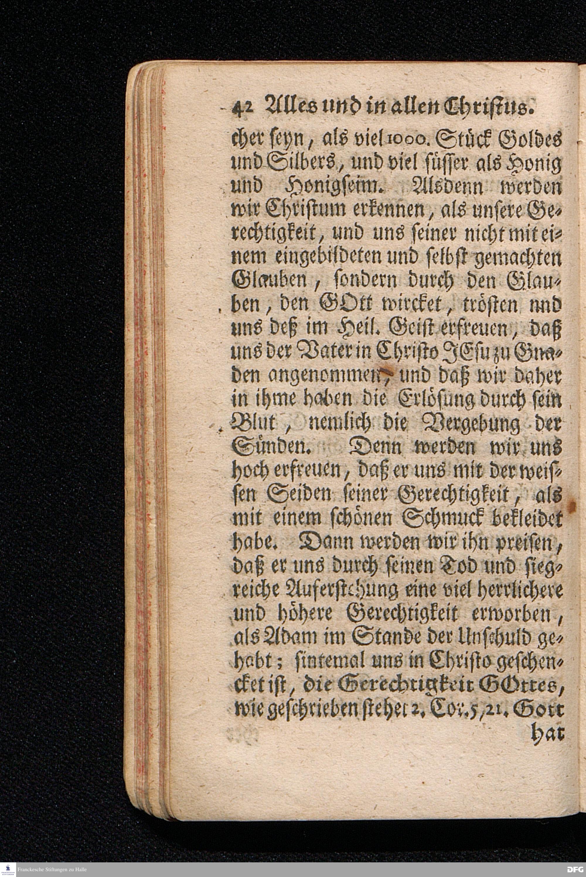 Alles Und In allen Christus / Aus dem Evangelischen Text Luc.I, 39--56. Am Fest der Heimsuchung Mariä 1714. In der Stadt Cönnern im Hertzogthum Magdeburg / In öffentlicher Predigt vorgestellet von August Hermann Francken / S.Theol.Prof.Past.Ulr.& Scholarch. EDITIO II. Der Jugend in den Schulen des Wäysenhauses nach gehaltenem Examine ausgetheilet den 25.Julii MDCCXXII. HALLE, In Verlegung des Wäysenhauses, MDCCXXII.