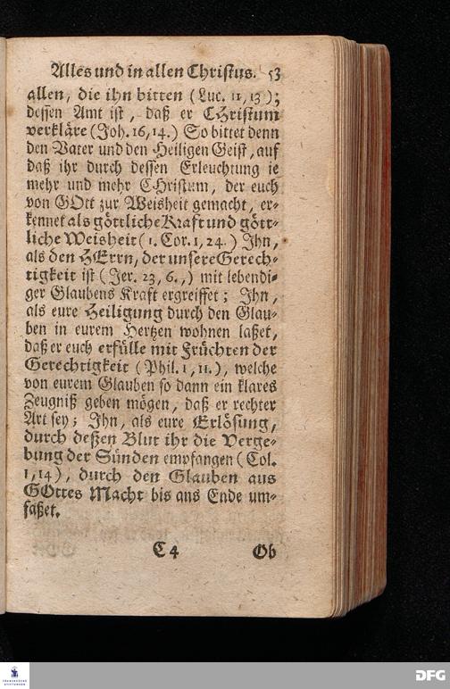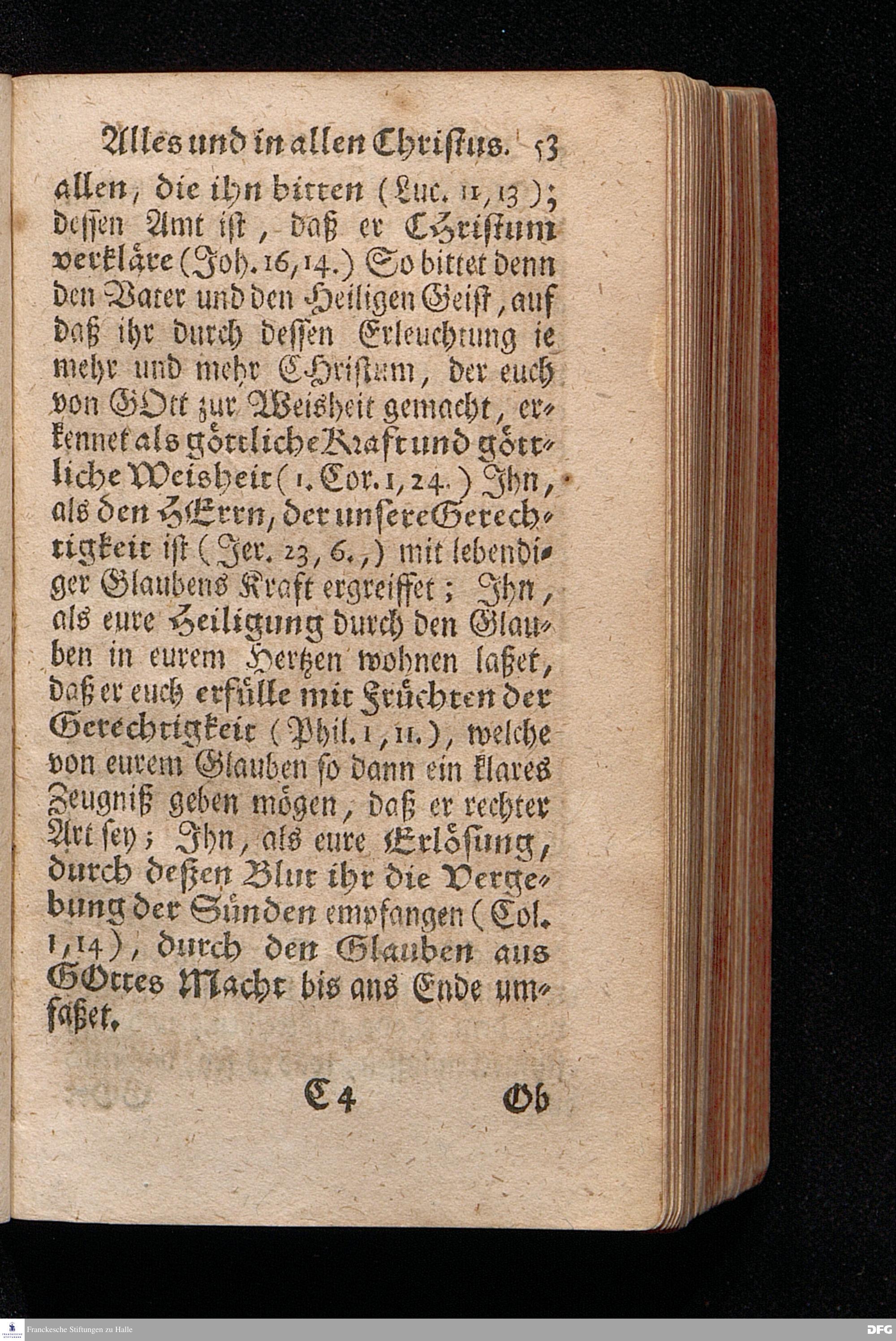 Alles Und In allen Christus / Aus dem Evangelischen Text Luc.I, 39--56. Am Fest der Heimsuchung Mariä 1714. In der Stadt Cönnern im Hertzogthum Magdeburg / In öffentlicher Predigt vorgestellet von August Hermann Francken / S.Theol.Prof.Past.Ulr.& Scholarch. EDITIO II. Der Jugend in den Schulen des Wäysenhauses nach gehaltenem Examine ausgetheilet den 25.Julii MDCCXXII. HALLE, In Verlegung des Wäysenhauses, MDCCXXII.