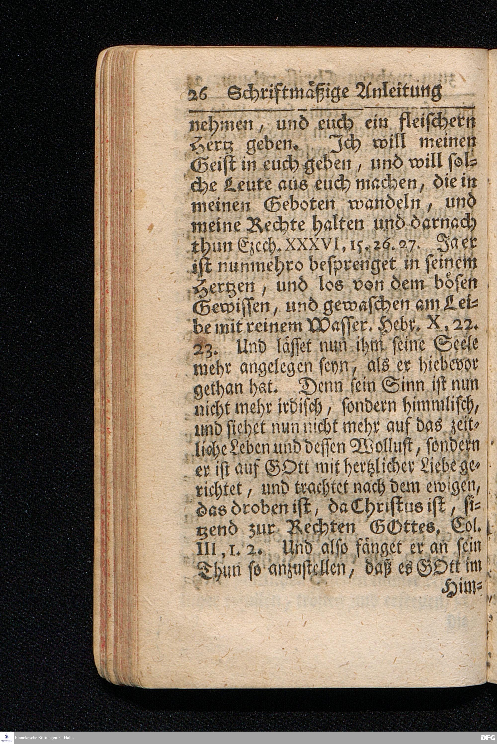 Die Lehre Vom Anfang Christliches Lebens / Bestehend in vier Theilen: I. In einer gründlichen Anleitung zu wahrer Busse und Glauben an GOTT. II. In einem einfältigen Unterricht, wie man die H.Schrift zu seiner wahren Erbauung lesen solle. III. In einer Schriftmäßigen Anweisung recht und GOTT gefällig zu beten. IV. In einer kurtzen Prüfung / ob man den wahren lebendigen Glauben an CHristum habe oder nicht. Die XIII.Auflage. HALLE, In Verlegung des Wäysenhauses, 1730.