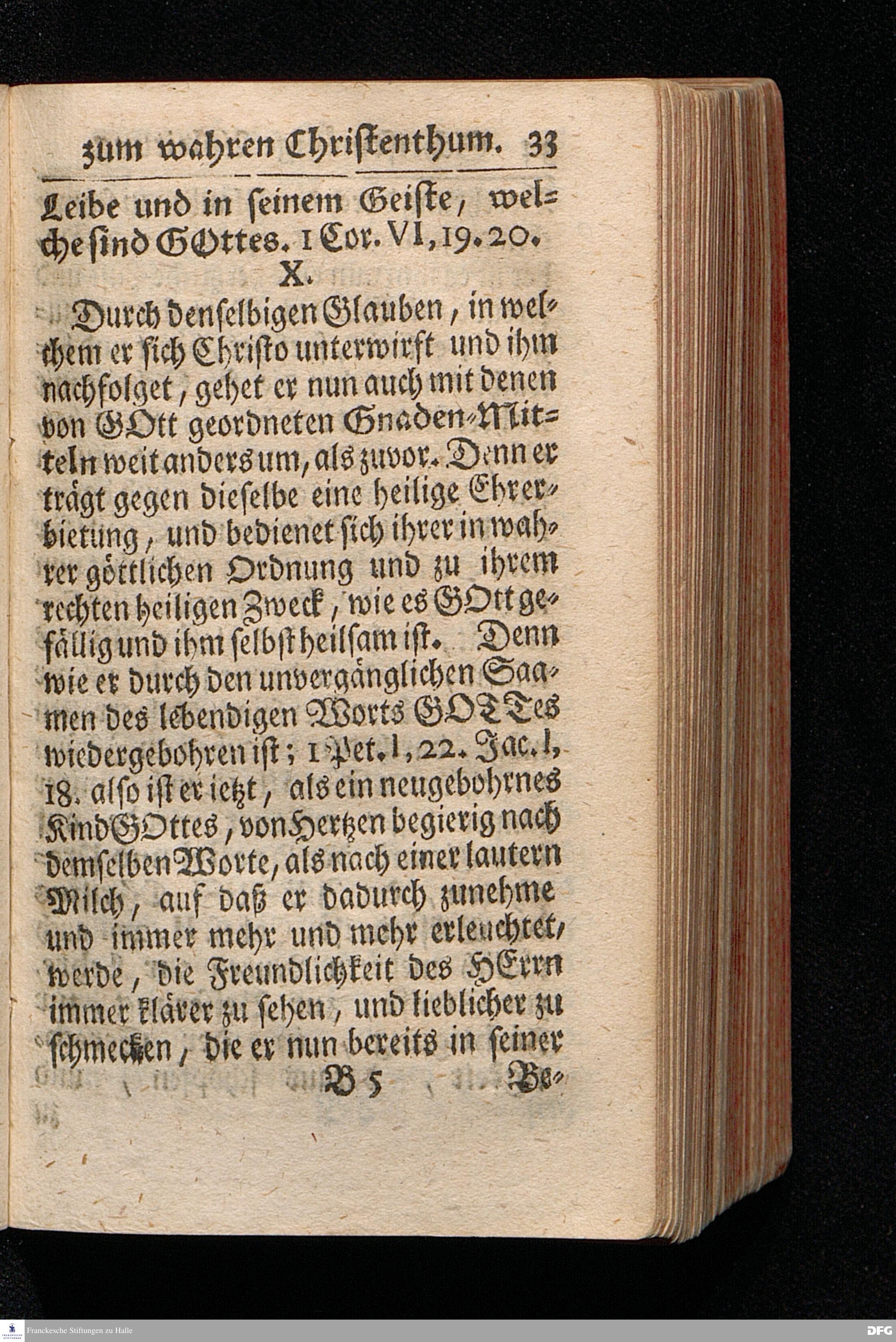 Die Lehre Vom Anfang Christliches Lebens / Bestehend in vier Theilen: I. In einer gründlichen Anleitung zu wahrer Busse und Glauben an GOTT. II. In einem einfältigen Unterricht, wie man die H.Schrift zu seiner wahren Erbauung lesen solle. III. In einer Schriftmäßigen Anweisung recht und GOTT gefällig zu beten. IV. In einer kurtzen Prüfung / ob man den wahren lebendigen Glauben an CHristum habe oder nicht. Die XIII.Auflage. HALLE, In Verlegung des Wäysenhauses, 1730.