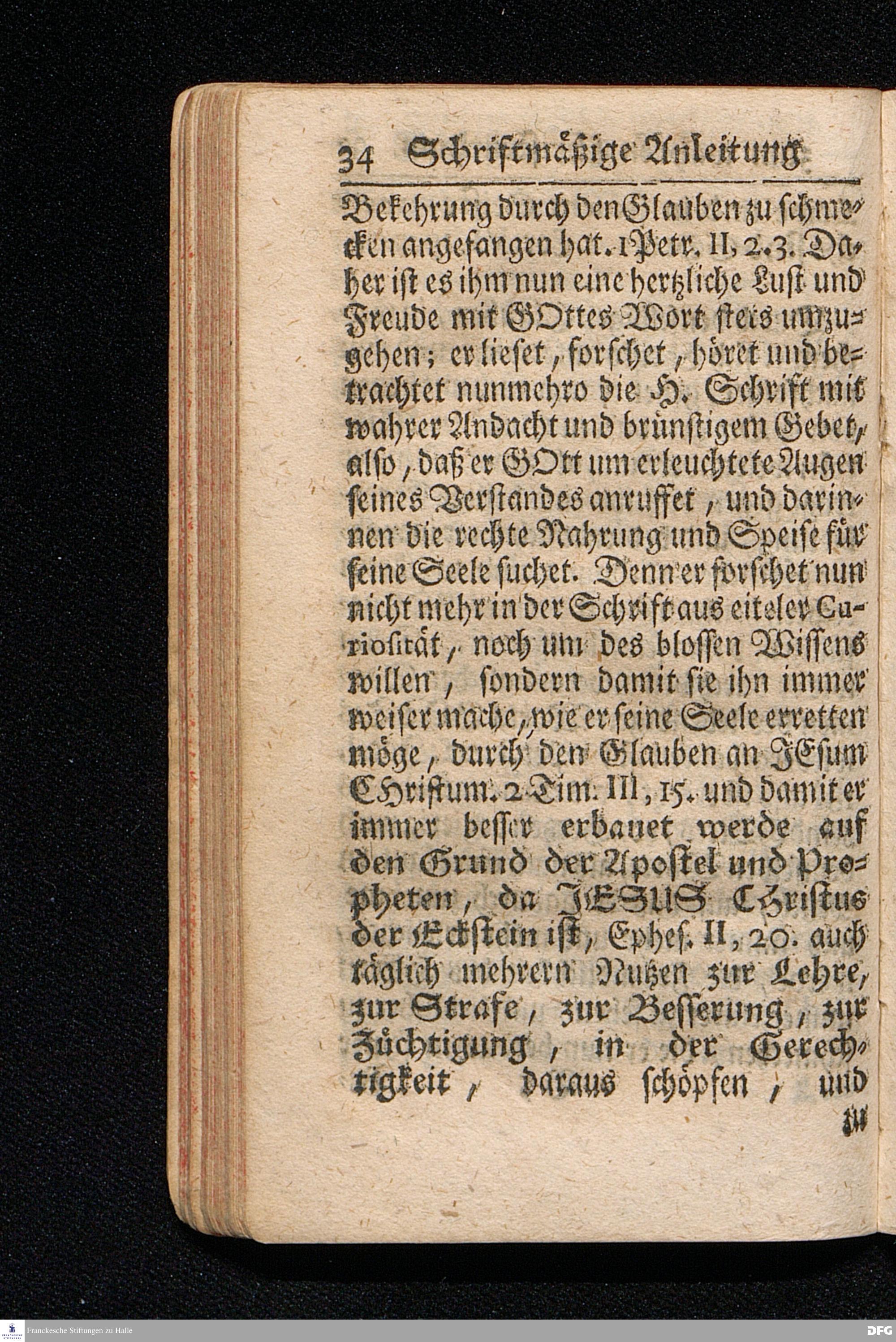 Die Lehre Vom Anfang Christliches Lebens / Bestehend in vier Theilen: I. In einer gründlichen Anleitung zu wahrer Busse und Glauben an GOTT. II. In einem einfältigen Unterricht, wie man die H.Schrift zu seiner wahren Erbauung lesen solle. III. In einer Schriftmäßigen Anweisung recht und GOTT gefällig zu beten. IV. In einer kurtzen Prüfung / ob man den wahren lebendigen Glauben an CHristum habe oder nicht. Die XIII.Auflage. HALLE, In Verlegung des Wäysenhauses, 1730.