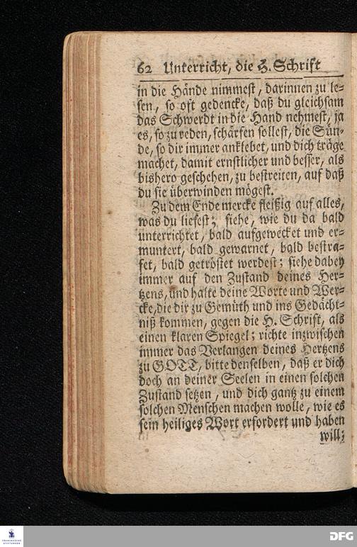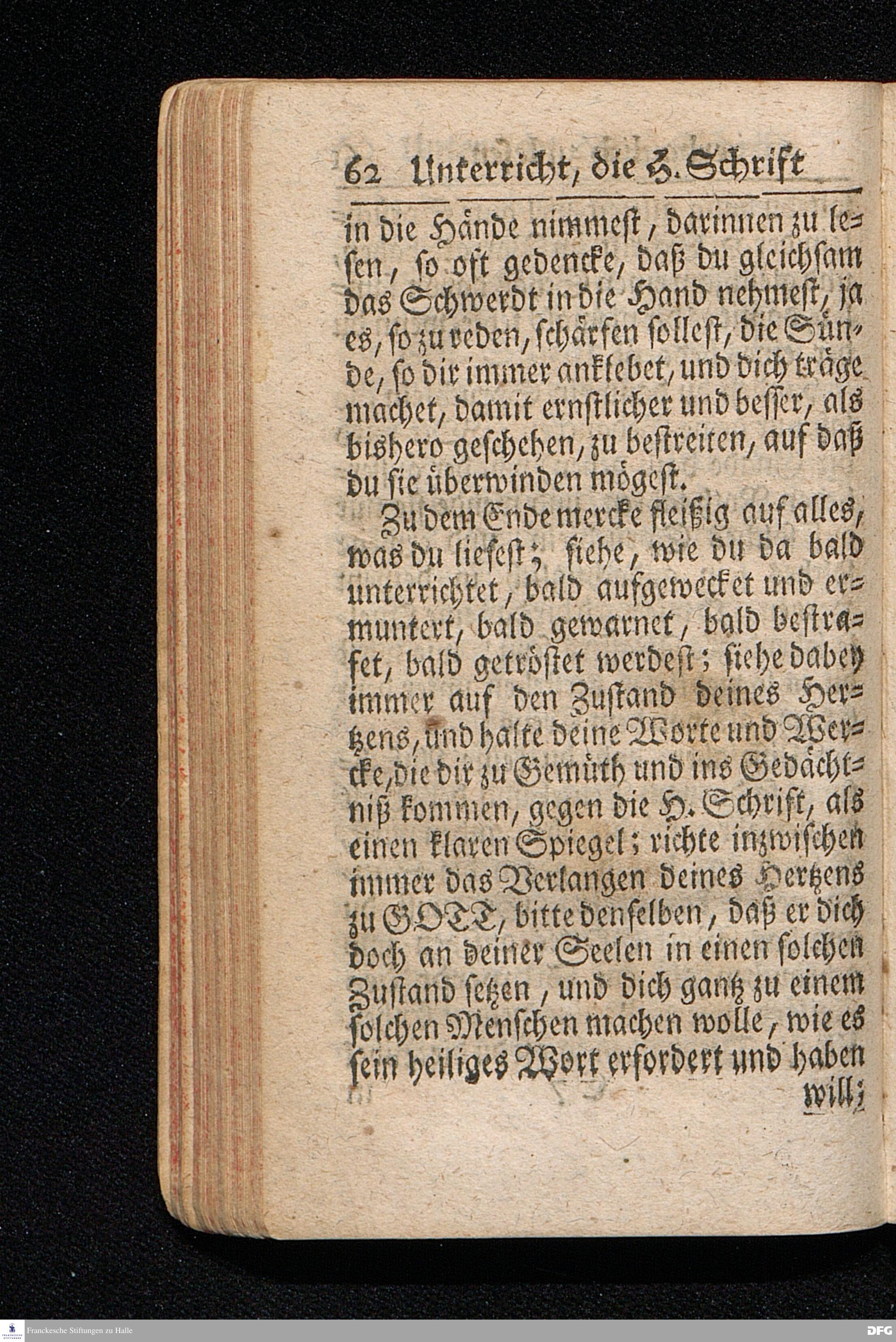 Die Lehre Vom Anfang Christliches Lebens / Bestehend in vier Theilen: I. In einer gründlichen Anleitung zu wahrer Busse und Glauben an GOTT. II. In einem einfältigen Unterricht, wie man die H.Schrift zu seiner wahren Erbauung lesen solle. III. In einer Schriftmäßigen Anweisung recht und GOTT gefällig zu beten. IV. In einer kurtzen Prüfung / ob man den wahren lebendigen Glauben an CHristum habe oder nicht. Die XIII.Auflage. HALLE, In Verlegung des Wäysenhauses, 1730.