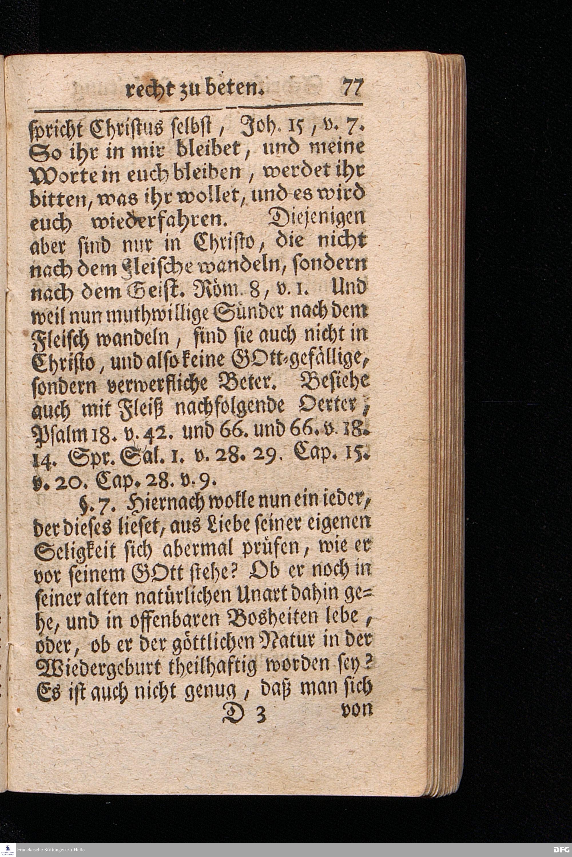 Die Lehre Vom Anfang Christliches Lebens / Bestehend in vier Theilen: I. In einer gründlichen Anleitung zu wahrer Busse und Glauben an GOTT. II. In einem einfältigen Unterricht, wie man die H.Schrift zu seiner wahren Erbauung lesen solle. III. In einer Schriftmäßigen Anweisung recht und GOTT gefällig zu beten. IV. In einer kurtzen Prüfung / ob man den wahren lebendigen Glauben an CHristum habe oder nicht. Die XIII.Auflage. HALLE, In Verlegung des Wäysenhauses, 1730.