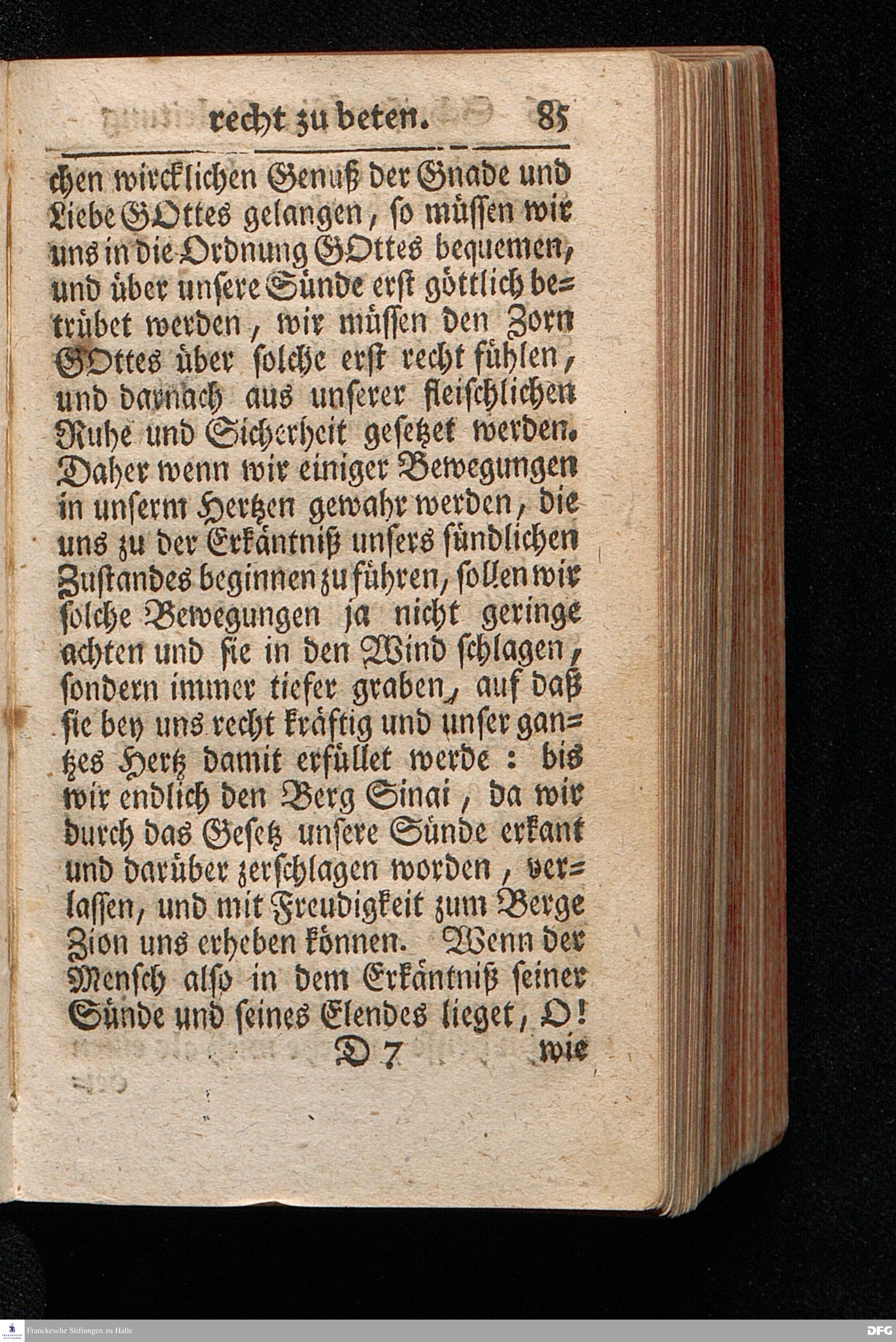 Die Lehre Vom Anfang Christliches Lebens / Bestehend in vier Theilen: I. In einer gründlichen Anleitung zu wahrer Busse und Glauben an GOTT. II. In einem einfältigen Unterricht, wie man die H.Schrift zu seiner wahren Erbauung lesen solle. III. In einer Schriftmäßigen Anweisung recht und GOTT gefällig zu beten. IV. In einer kurtzen Prüfung / ob man den wahren lebendigen Glauben an CHristum habe oder nicht. Die XIII.Auflage. HALLE, In Verlegung des Wäysenhauses, 1730.