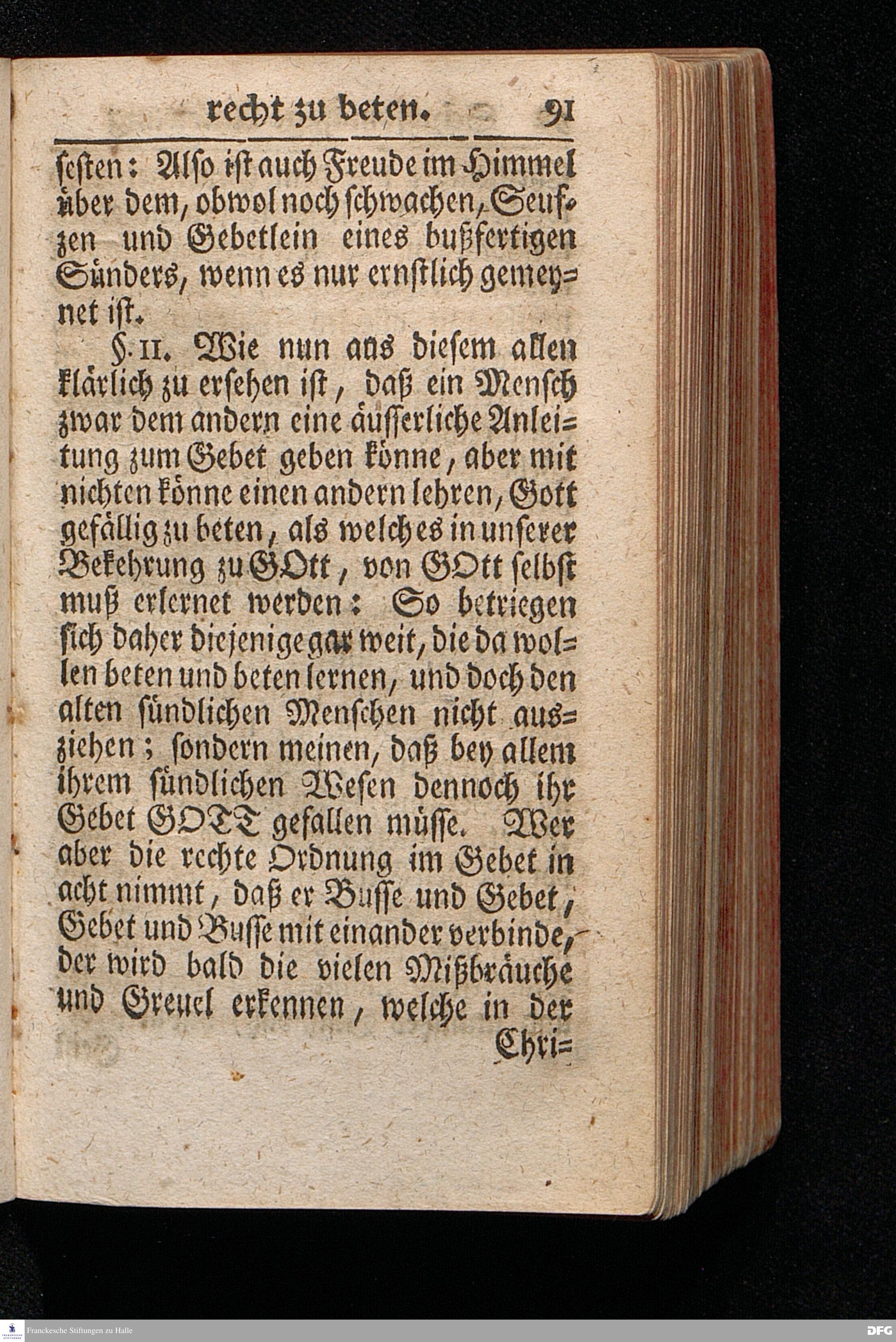 Die Lehre Vom Anfang Christliches Lebens / Bestehend in vier Theilen: I. In einer gründlichen Anleitung zu wahrer Busse und Glauben an GOTT. II. In einem einfältigen Unterricht, wie man die H.Schrift zu seiner wahren Erbauung lesen solle. III. In einer Schriftmäßigen Anweisung recht und GOTT gefällig zu beten. IV. In einer kurtzen Prüfung / ob man den wahren lebendigen Glauben an CHristum habe oder nicht. Die XIII.Auflage. HALLE, In Verlegung des Wäysenhauses, 1730.