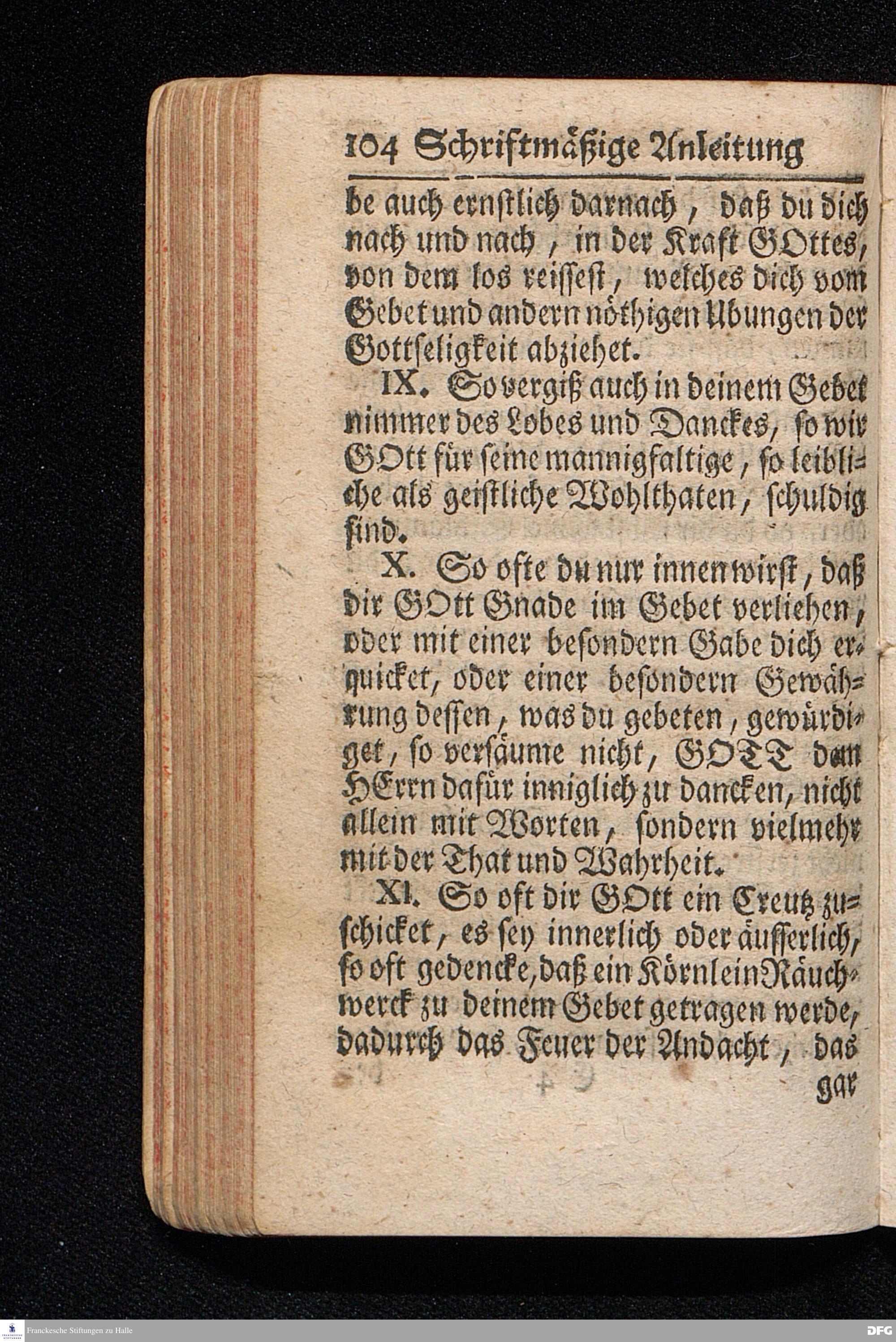 Die Lehre Vom Anfang Christliches Lebens / Bestehend in vier Theilen: I. In einer gründlichen Anleitung zu wahrer Busse und Glauben an GOTT. II. In einem einfältigen Unterricht, wie man die H.Schrift zu seiner wahren Erbauung lesen solle. III. In einer Schriftmäßigen Anweisung recht und GOTT gefällig zu beten. IV. In einer kurtzen Prüfung / ob man den wahren lebendigen Glauben an CHristum habe oder nicht. Die XIII.Auflage. HALLE, In Verlegung des Wäysenhauses, 1730.