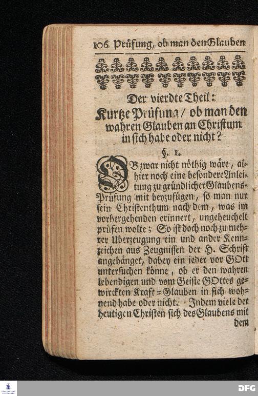 Die Lehre Vom Anfang Christliches Lebens / Bestehend in vier Theilen: I. In einer gründlichen Anleitung zu wahrer Busse und Glauben an GOTT. II. In einem einfältigen Unterricht, wie man die H.Schrift zu seiner wahren Erbauung lesen solle. III. In einer Schriftmäßigen Anweisung recht und GOTT gefällig zu beten. IV. In einer kurtzen Prüfung / ob man den wahren lebendigen Glauben an CHristum habe oder nicht. Die XIII.Auflage. HALLE, In Verlegung des Wäysenhauses, 1730.