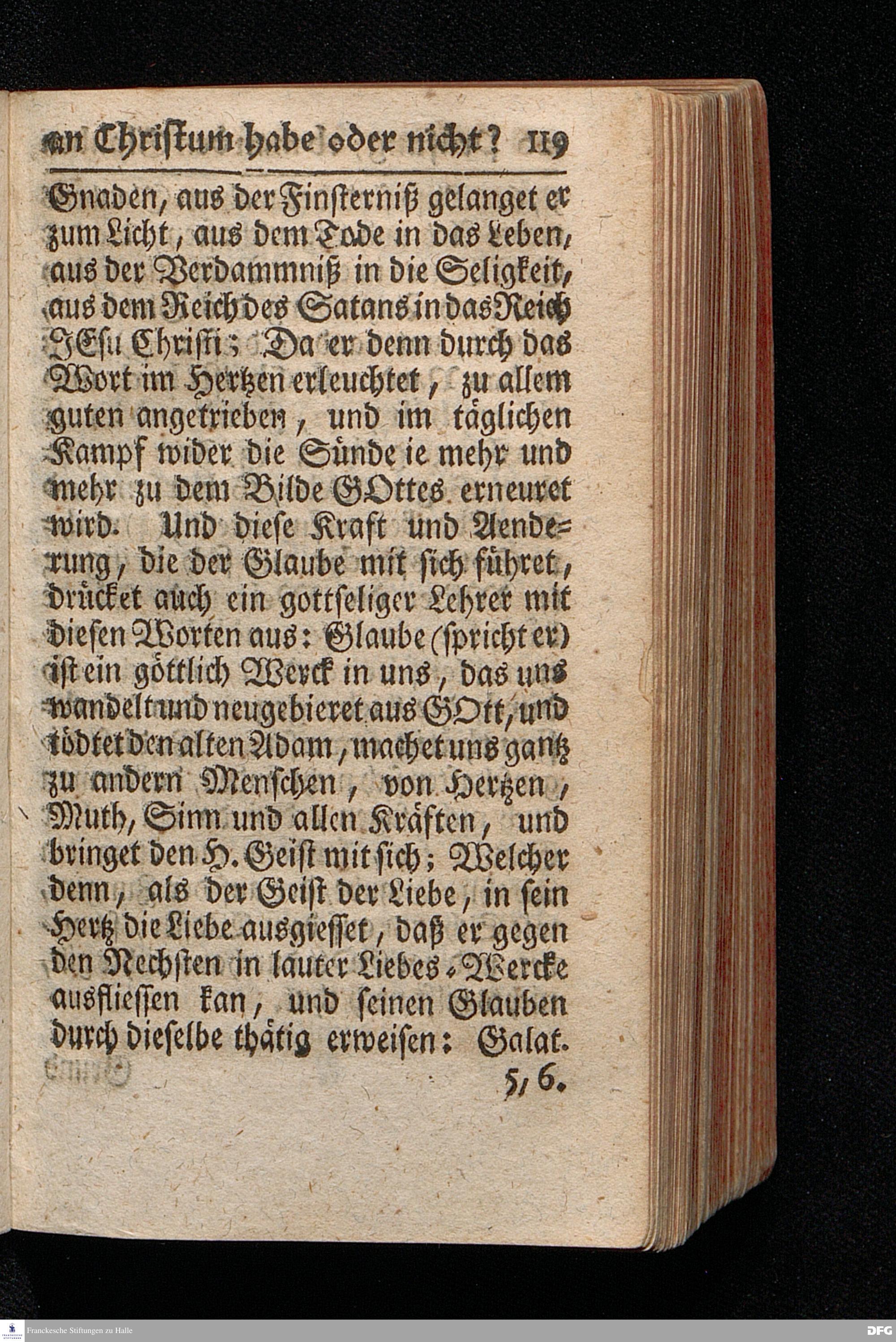 Die Lehre Vom Anfang Christliches Lebens / Bestehend in vier Theilen: I. In einer gründlichen Anleitung zu wahrer Busse und Glauben an GOTT. II. In einem einfältigen Unterricht, wie man die H.Schrift zu seiner wahren Erbauung lesen solle. III. In einer Schriftmäßigen Anweisung recht und GOTT gefällig zu beten. IV. In einer kurtzen Prüfung / ob man den wahren lebendigen Glauben an CHristum habe oder nicht. Die XIII.Auflage. HALLE, In Verlegung des Wäysenhauses, 1730.