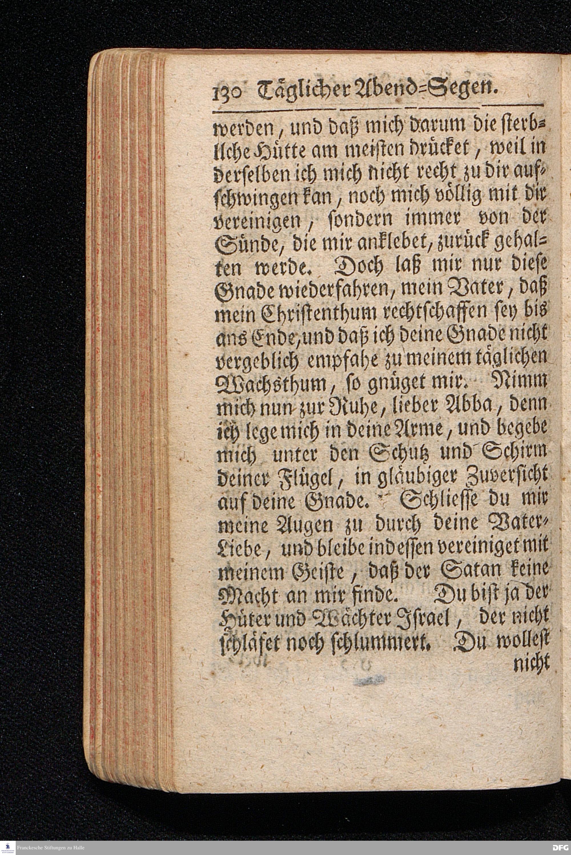 Die Lehre Vom Anfang Christliches Lebens / Bestehend in vier Theilen: I. In einer gründlichen Anleitung zu wahrer Busse und Glauben an GOTT. II. In einem einfältigen Unterricht, wie man die H.Schrift zu seiner wahren Erbauung lesen solle. III. In einer Schriftmäßigen Anweisung recht und GOTT gefällig zu beten. IV. In einer kurtzen Prüfung / ob man den wahren lebendigen Glauben an CHristum habe oder nicht. Die XIII.Auflage. HALLE, In Verlegung des Wäysenhauses, 1730.