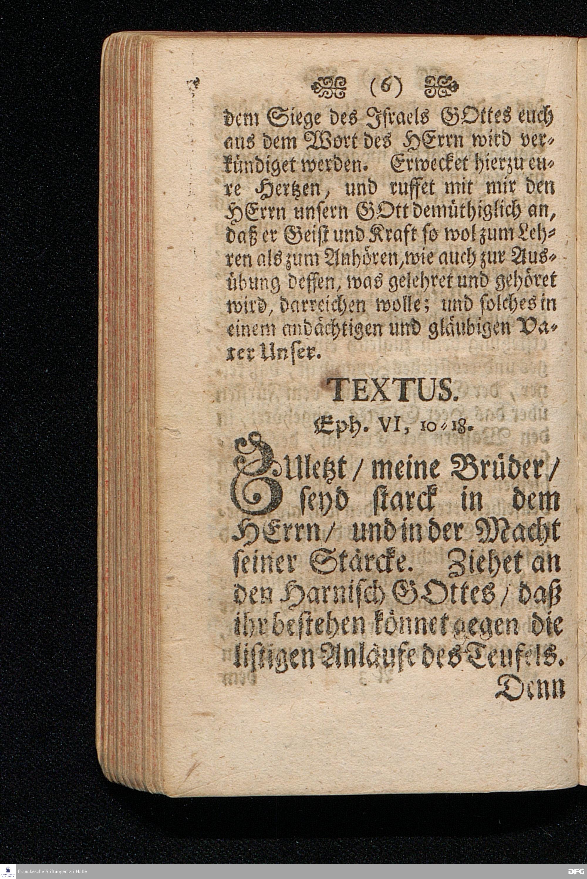 Die Apostolische Aufmunterung Zur Ausübung Der guten Ritterschafft / In einer Predigt Uber die Epistel Ephes.VI, 10-18. Am XXI.Sonntag nach Trinit. 1703. In der Schul=Kirche zu Halle vorgestellet Von August Hermann Francken / SS.Theol.Prof.Ord.Past.Vlr. & Schol. Andere Auflage. HALLE, Gedruckt im Wäysen=Hause Anno 1723.