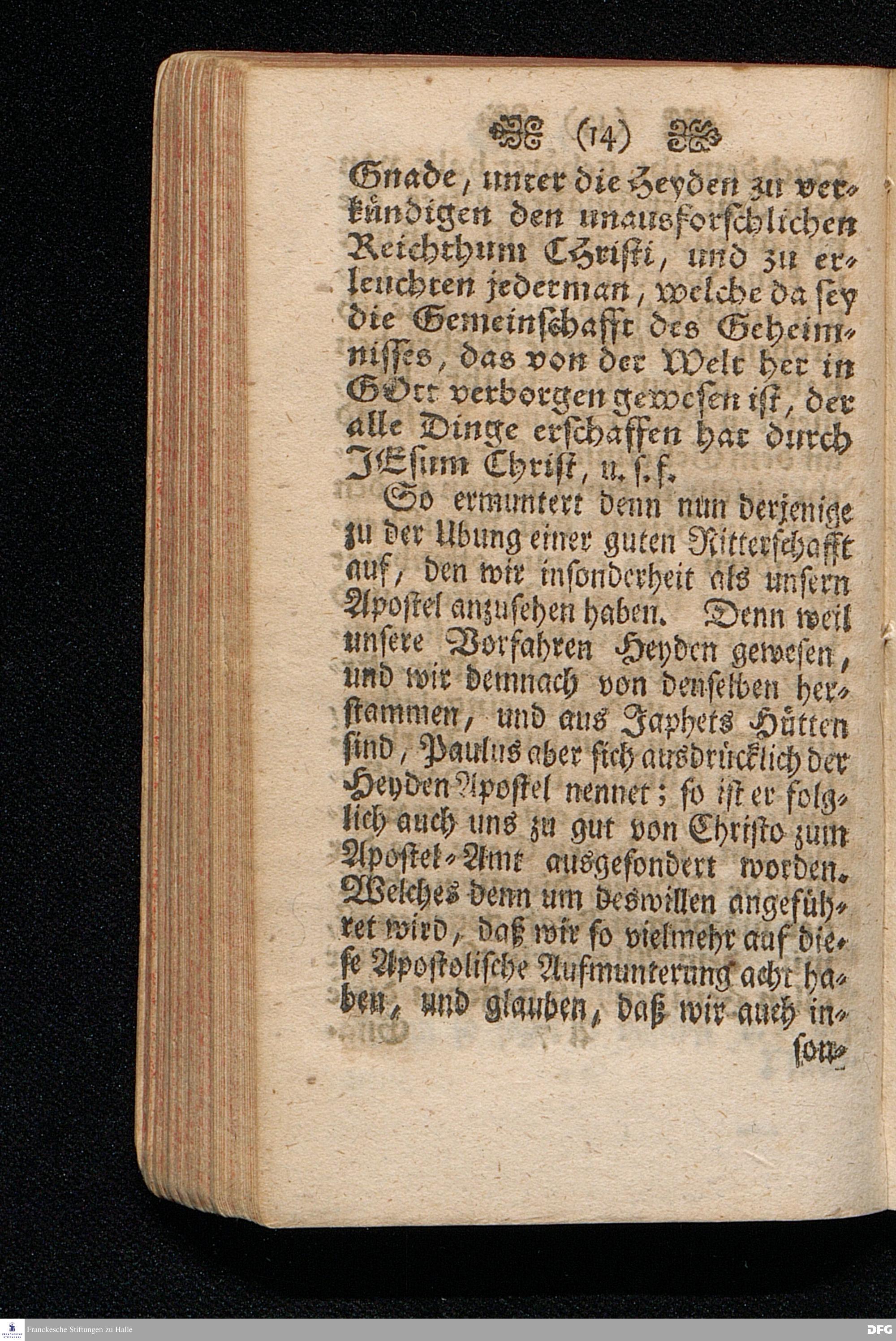 Die Apostolische Aufmunterung Zur Ausübung Der guten Ritterschafft / In einer Predigt Uber die Epistel Ephes.VI, 10-18. Am XXI.Sonntag nach Trinit. 1703. In der Schul=Kirche zu Halle vorgestellet Von August Hermann Francken / SS.Theol.Prof.Ord.Past.Vlr. & Schol. Andere Auflage. HALLE, Gedruckt im Wäysen=Hause Anno 1723.