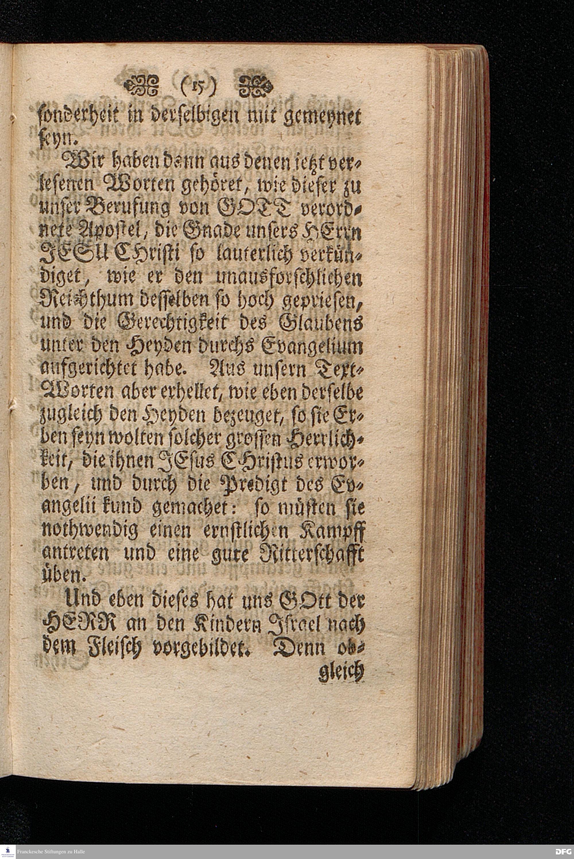 Die Apostolische Aufmunterung Zur Ausübung Der guten Ritterschafft / In einer Predigt Uber die Epistel Ephes.VI, 10-18. Am XXI.Sonntag nach Trinit. 1703. In der Schul=Kirche zu Halle vorgestellet Von August Hermann Francken / SS.Theol.Prof.Ord.Past.Vlr. & Schol. Andere Auflage. HALLE, Gedruckt im Wäysen=Hause Anno 1723.