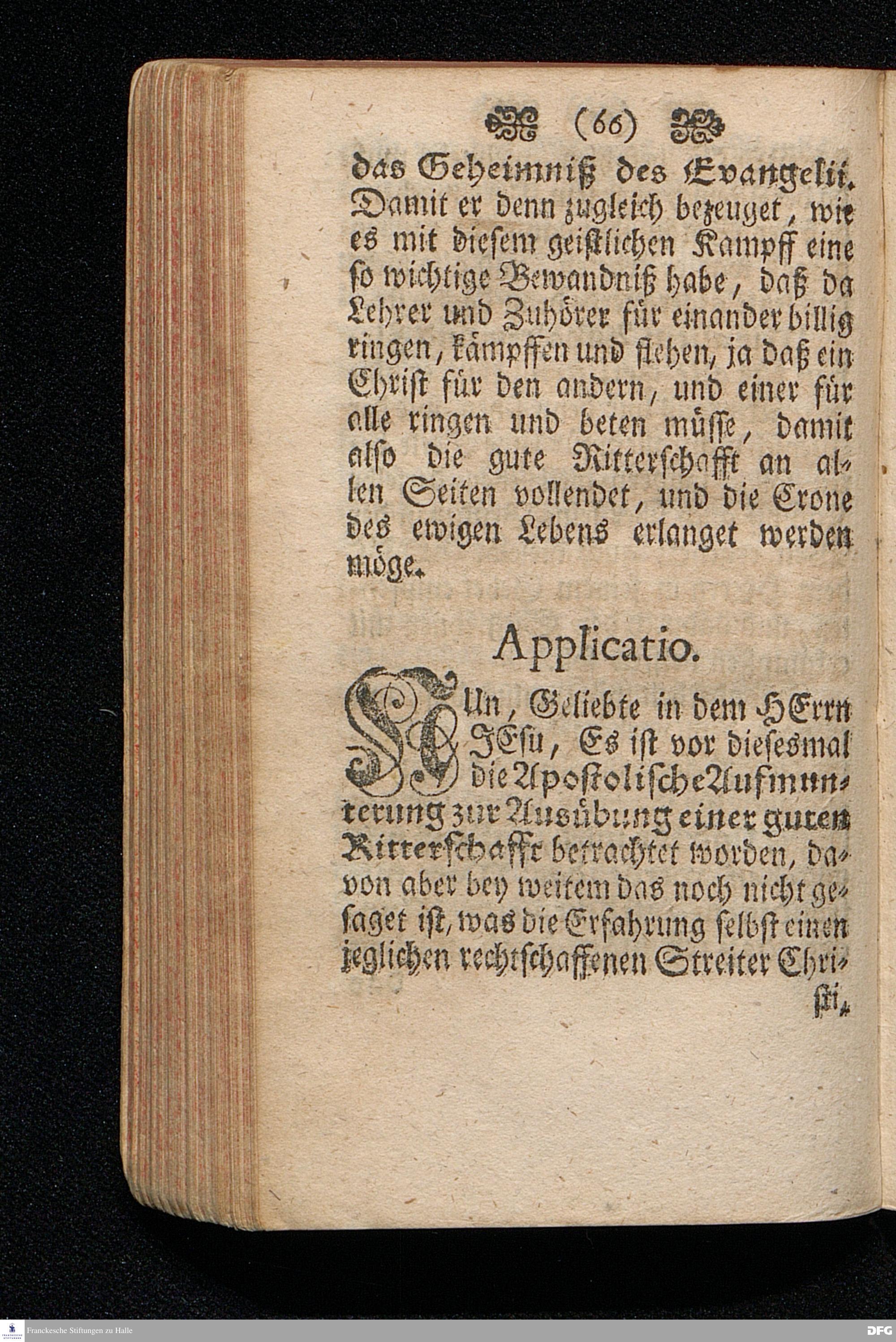Die Apostolische Aufmunterung Zur Ausübung Der guten Ritterschafft / In einer Predigt Uber die Epistel Ephes.VI, 10-18. Am XXI.Sonntag nach Trinit. 1703. In der Schul=Kirche zu Halle vorgestellet Von August Hermann Francken / SS.Theol.Prof.Ord.Past.Vlr. & Schol. Andere Auflage. HALLE, Gedruckt im Wäysen=Hause Anno 1723.