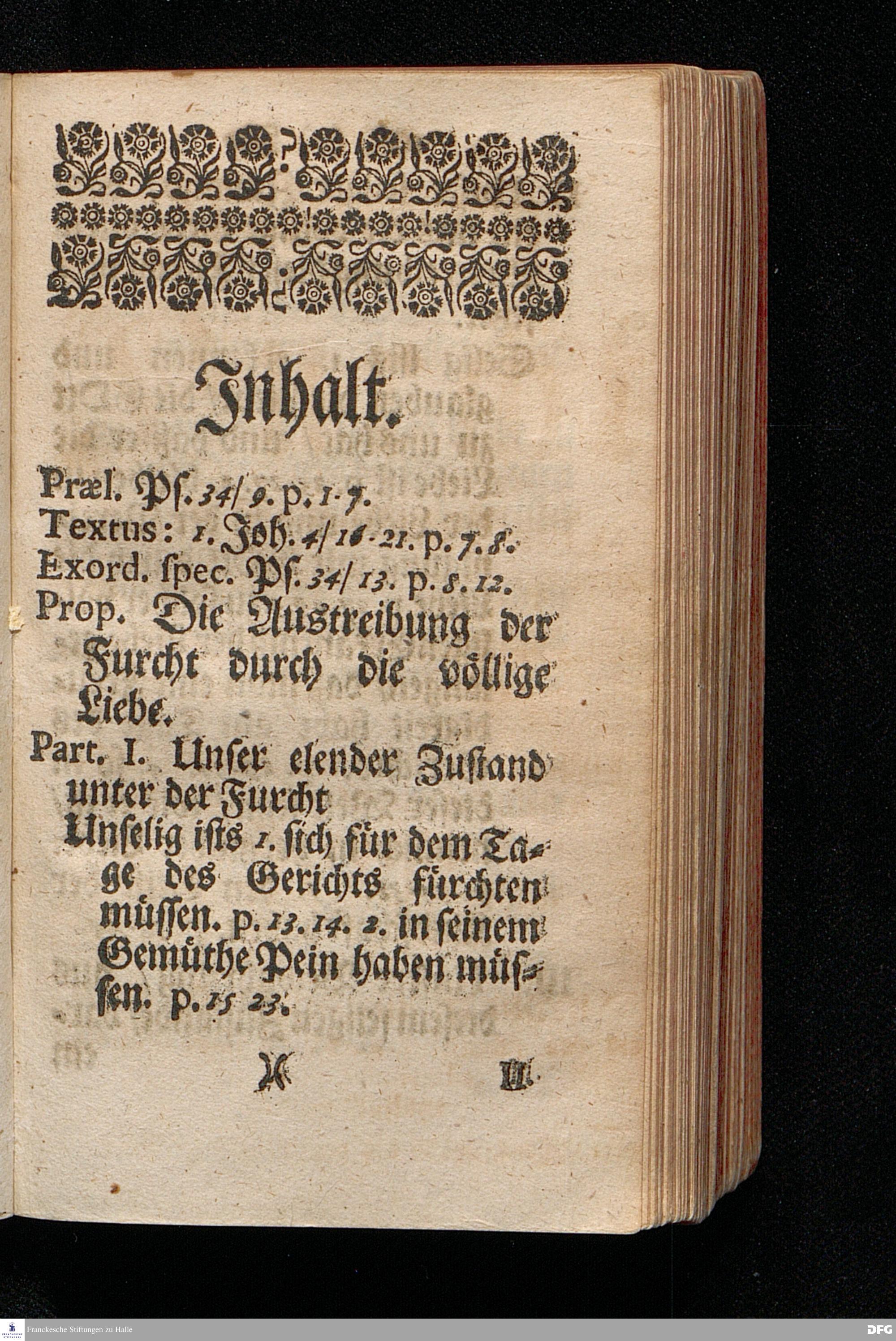 Die Austreibung Der Furcht durch die völlige Liebe, Am I.Sonntag nach Trinitatis 1719. In einer Uber die ordentliche Epistolische Lection aus I.Joh.IV, 16-21. In Der Universitäts=Kirche zu Leipzig auf geschehenen Antrag gehaltenen Predigt vorgestellet, und auf Begehren zum Druck gegeben, Von August Hermann Francken / S.Theol.Prof.& Past.zu St.Ulrich, und des Gymnasii Scholarcha. Andere Auflage. HALLE / In Verlegung des Wäysenhauses / 1723.