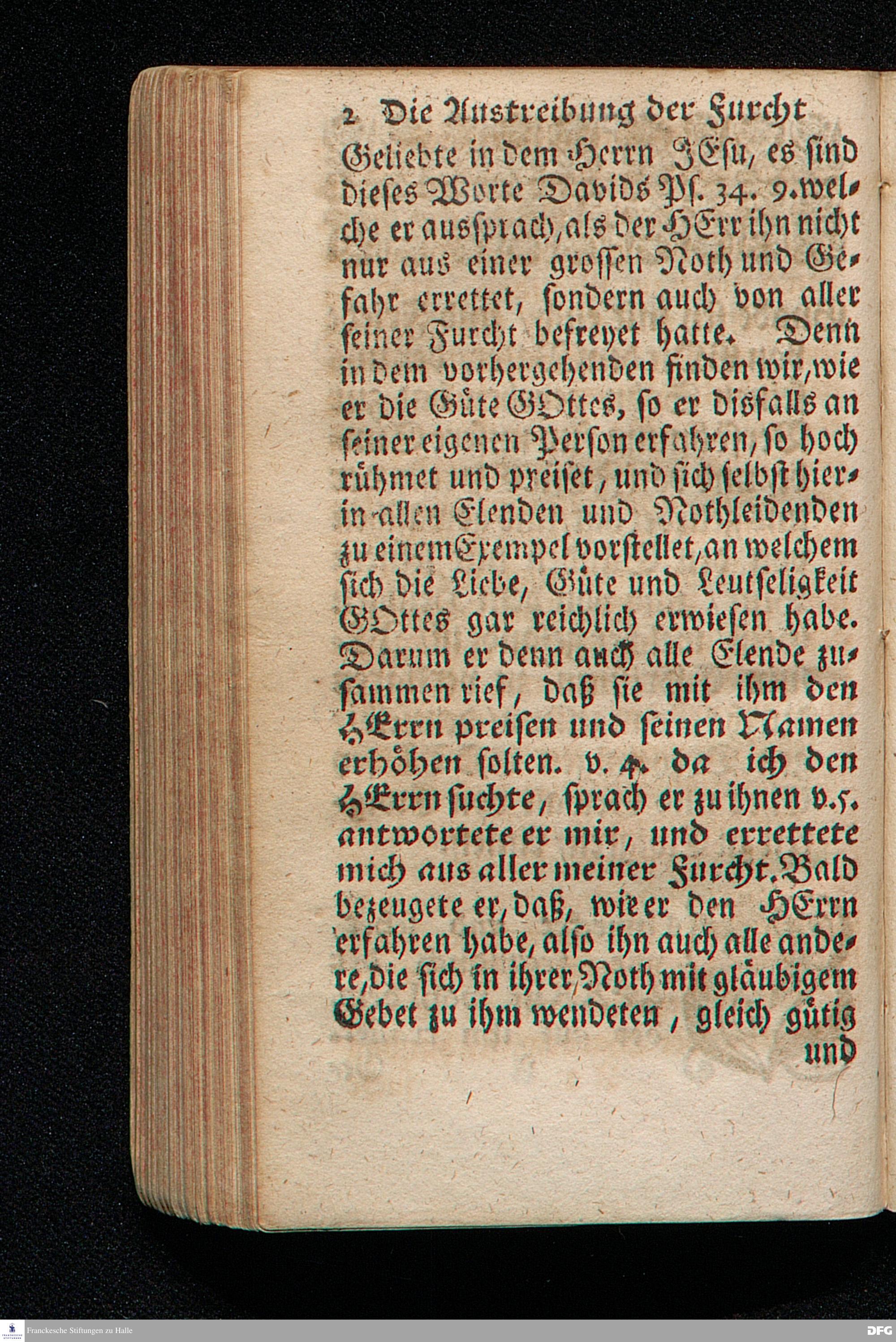 Die Austreibung Der Furcht durch die völlige Liebe, Am I.Sonntag nach Trinitatis 1719. In einer Uber die ordentliche Epistolische Lection aus I.Joh.IV, 16-21. In Der Universitäts=Kirche zu Leipzig auf geschehenen Antrag gehaltenen Predigt vorgestellet, und auf Begehren zum Druck gegeben, Von August Hermann Francken / S.Theol.Prof.& Past.zu St.Ulrich, und des Gymnasii Scholarcha. Andere Auflage. HALLE / In Verlegung des Wäysenhauses / 1723.