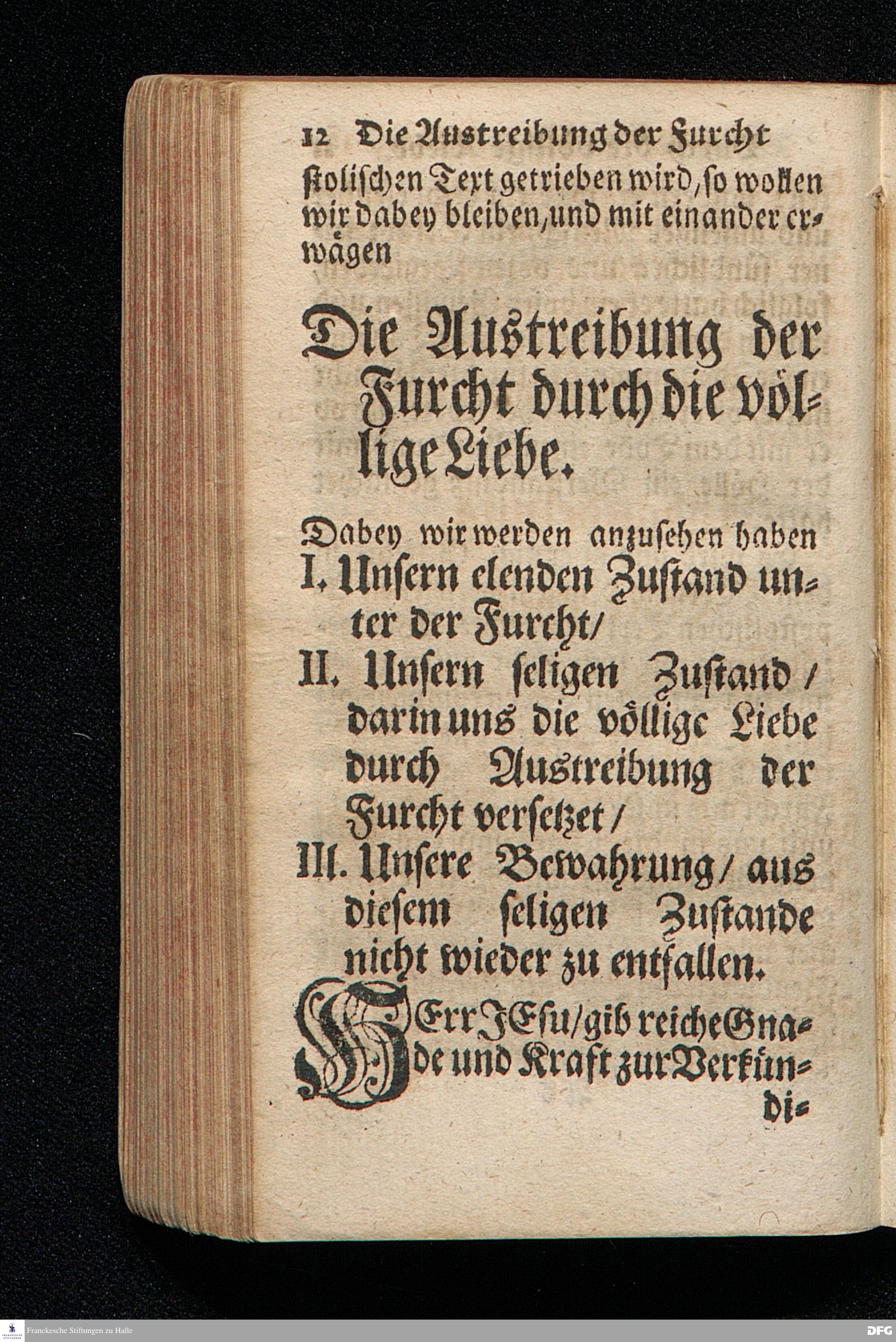 Die Austreibung Der Furcht durch die völlige Liebe, Am I.Sonntag nach Trinitatis 1719. In einer Uber die ordentliche Epistolische Lection aus I.Joh.IV, 16-21. In Der Universitäts=Kirche zu Leipzig auf geschehenen Antrag gehaltenen Predigt vorgestellet, und auf Begehren zum Druck gegeben, Von August Hermann Francken / S.Theol.Prof.& Past.zu St.Ulrich, und des Gymnasii Scholarcha. Andere Auflage. HALLE / In Verlegung des Wäysenhauses / 1723.