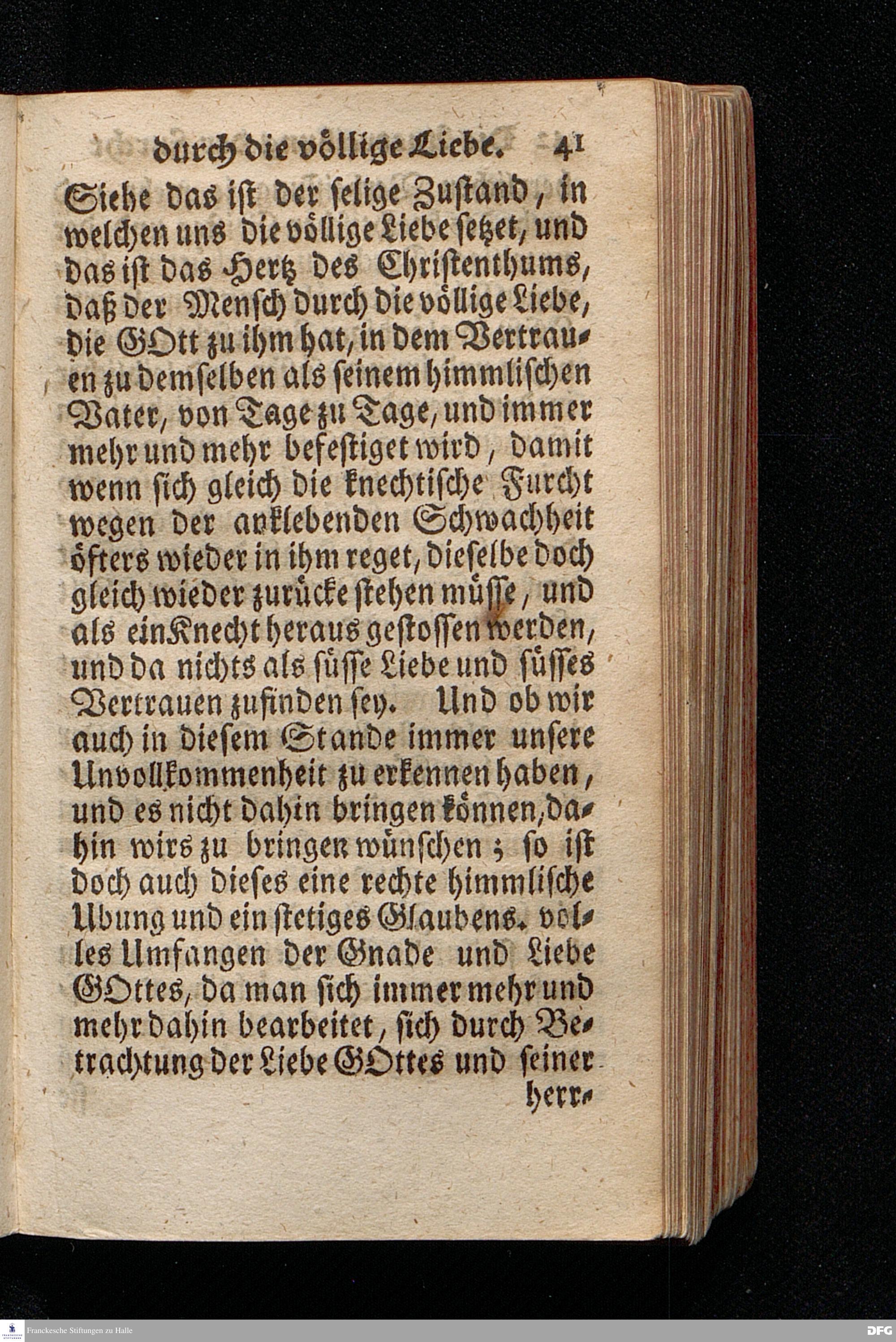 Die Austreibung Der Furcht durch die völlige Liebe, Am I.Sonntag nach Trinitatis 1719. In einer Uber die ordentliche Epistolische Lection aus I.Joh.IV, 16-21. In Der Universitäts=Kirche zu Leipzig auf geschehenen Antrag gehaltenen Predigt vorgestellet, und auf Begehren zum Druck gegeben, Von August Hermann Francken / S.Theol.Prof.& Past.zu St.Ulrich, und des Gymnasii Scholarcha. Andere Auflage. HALLE / In Verlegung des Wäysenhauses / 1723.
