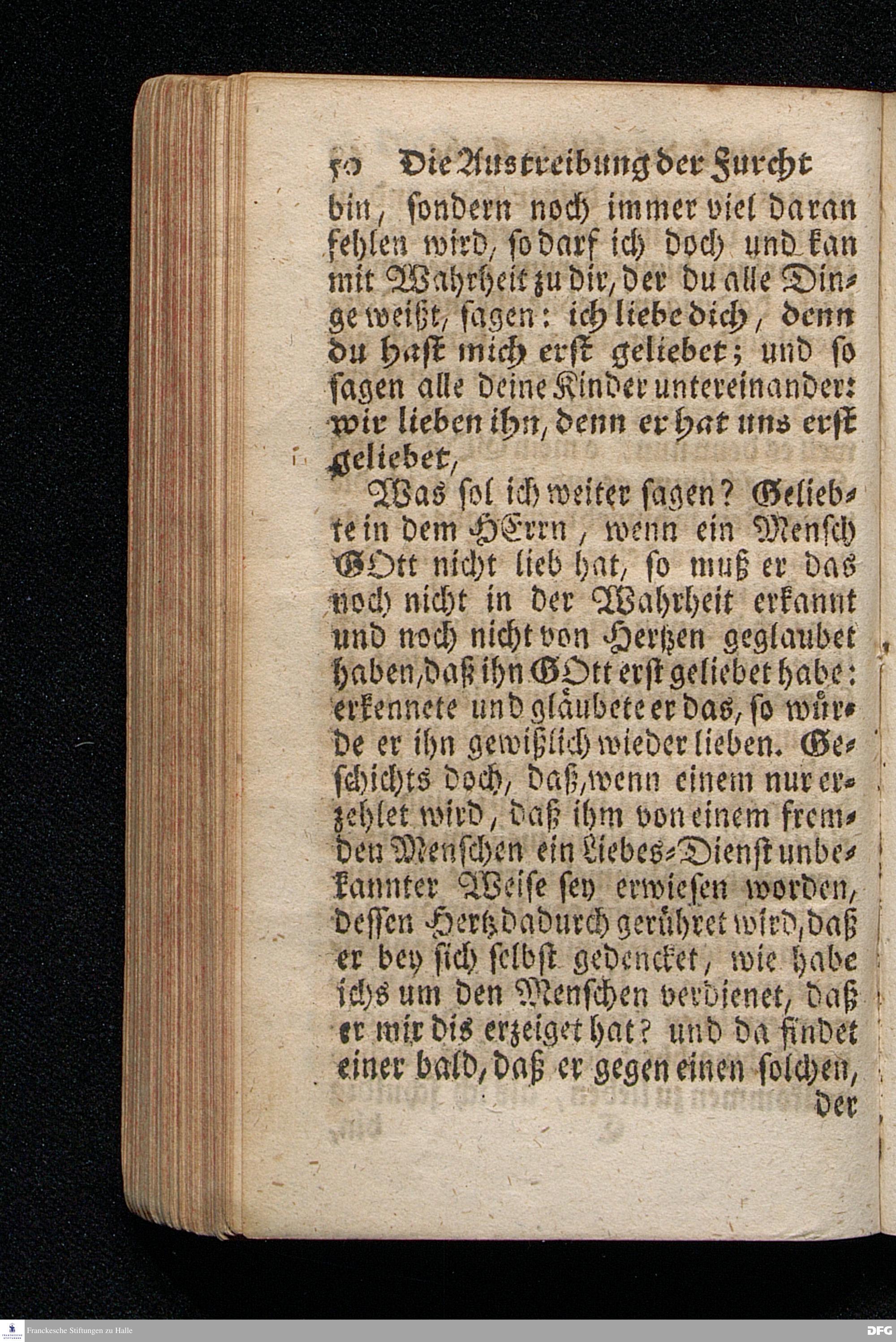 Die Austreibung Der Furcht durch die völlige Liebe, Am I.Sonntag nach Trinitatis 1719. In einer Uber die ordentliche Epistolische Lection aus I.Joh.IV, 16-21. In Der Universitäts=Kirche zu Leipzig auf geschehenen Antrag gehaltenen Predigt vorgestellet, und auf Begehren zum Druck gegeben, Von August Hermann Francken / S.Theol.Prof.& Past.zu St.Ulrich, und des Gymnasii Scholarcha. Andere Auflage. HALLE / In Verlegung des Wäysenhauses / 1723.