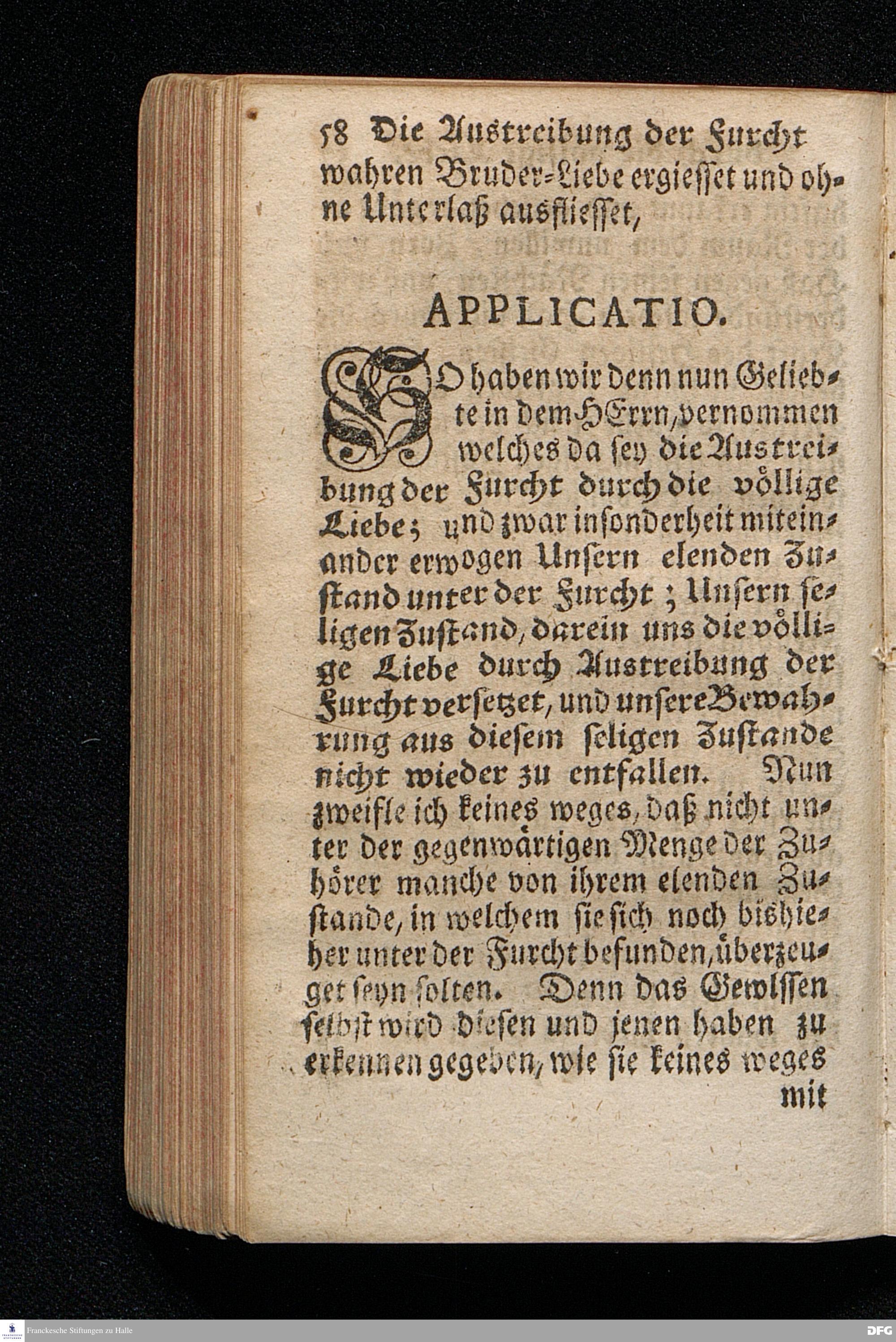 Die Austreibung Der Furcht durch die völlige Liebe, Am I.Sonntag nach Trinitatis 1719. In einer Uber die ordentliche Epistolische Lection aus I.Joh.IV, 16-21. In Der Universitäts=Kirche zu Leipzig auf geschehenen Antrag gehaltenen Predigt vorgestellet, und auf Begehren zum Druck gegeben, Von August Hermann Francken / S.Theol.Prof.& Past.zu St.Ulrich, und des Gymnasii Scholarcha. Andere Auflage. HALLE / In Verlegung des Wäysenhauses / 1723.