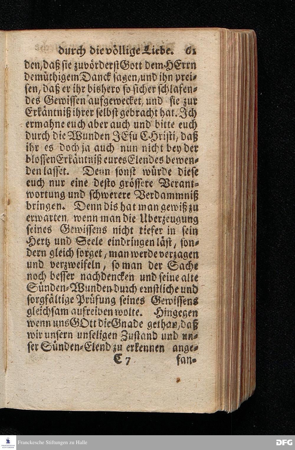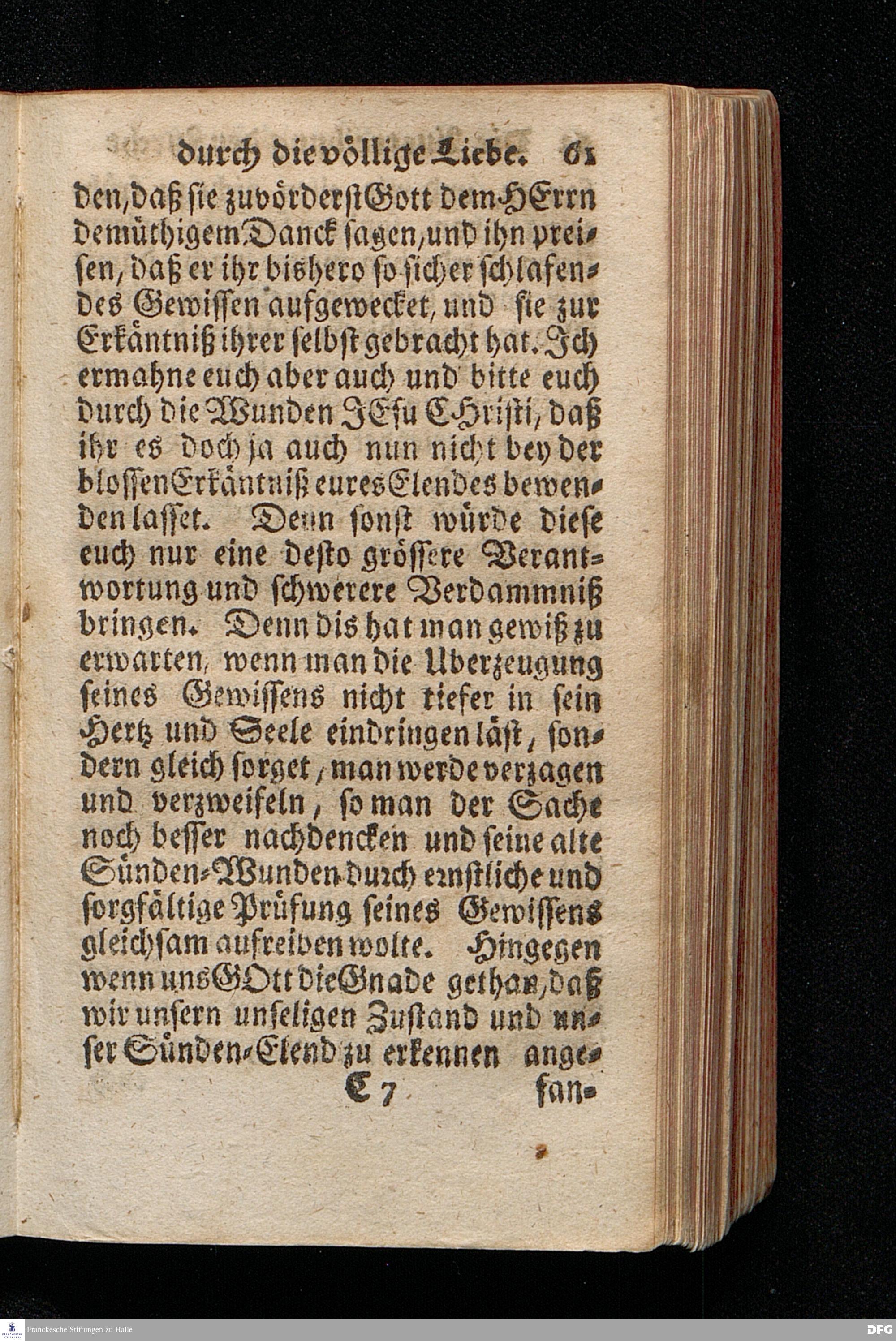 Die Austreibung Der Furcht durch die völlige Liebe, Am I.Sonntag nach Trinitatis 1719. In einer Uber die ordentliche Epistolische Lection aus I.Joh.IV, 16-21. In Der Universitäts=Kirche zu Leipzig auf geschehenen Antrag gehaltenen Predigt vorgestellet, und auf Begehren zum Druck gegeben, Von August Hermann Francken / S.Theol.Prof.& Past.zu St.Ulrich, und des Gymnasii Scholarcha. Andere Auflage. HALLE / In Verlegung des Wäysenhauses / 1723.