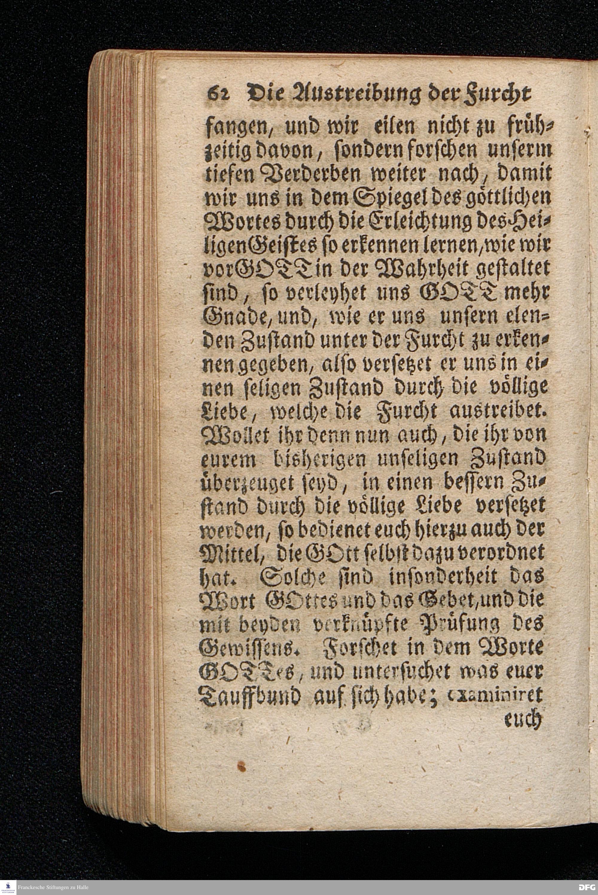 Die Austreibung Der Furcht durch die völlige Liebe, Am I.Sonntag nach Trinitatis 1719. In einer Uber die ordentliche Epistolische Lection aus I.Joh.IV, 16-21. In Der Universitäts=Kirche zu Leipzig auf geschehenen Antrag gehaltenen Predigt vorgestellet, und auf Begehren zum Druck gegeben, Von August Hermann Francken / S.Theol.Prof.& Past.zu St.Ulrich, und des Gymnasii Scholarcha. Andere Auflage. HALLE / In Verlegung des Wäysenhauses / 1723.