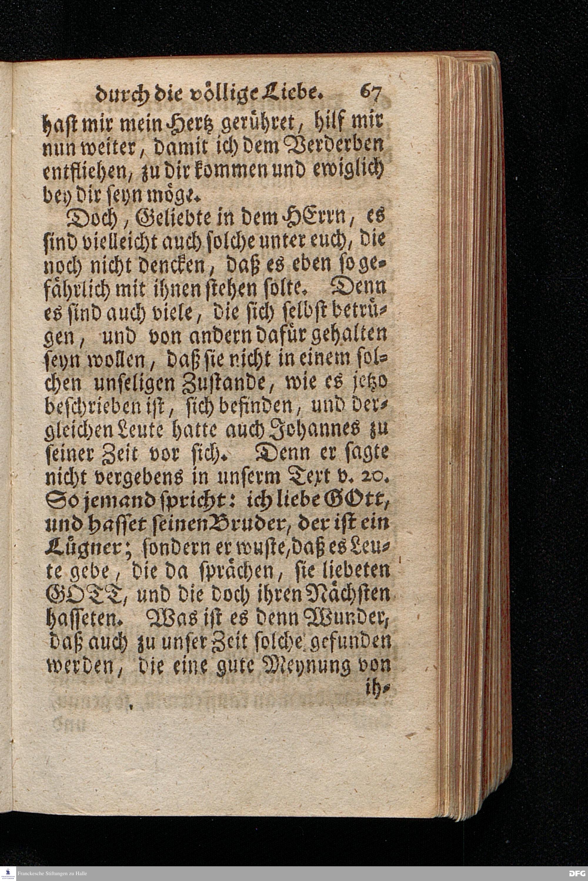 Die Austreibung Der Furcht durch die völlige Liebe, Am I.Sonntag nach Trinitatis 1719. In einer Uber die ordentliche Epistolische Lection aus I.Joh.IV, 16-21. In Der Universitäts=Kirche zu Leipzig auf geschehenen Antrag gehaltenen Predigt vorgestellet, und auf Begehren zum Druck gegeben, Von August Hermann Francken / S.Theol.Prof.& Past.zu St.Ulrich, und des Gymnasii Scholarcha. Andere Auflage. HALLE / In Verlegung des Wäysenhauses / 1723.