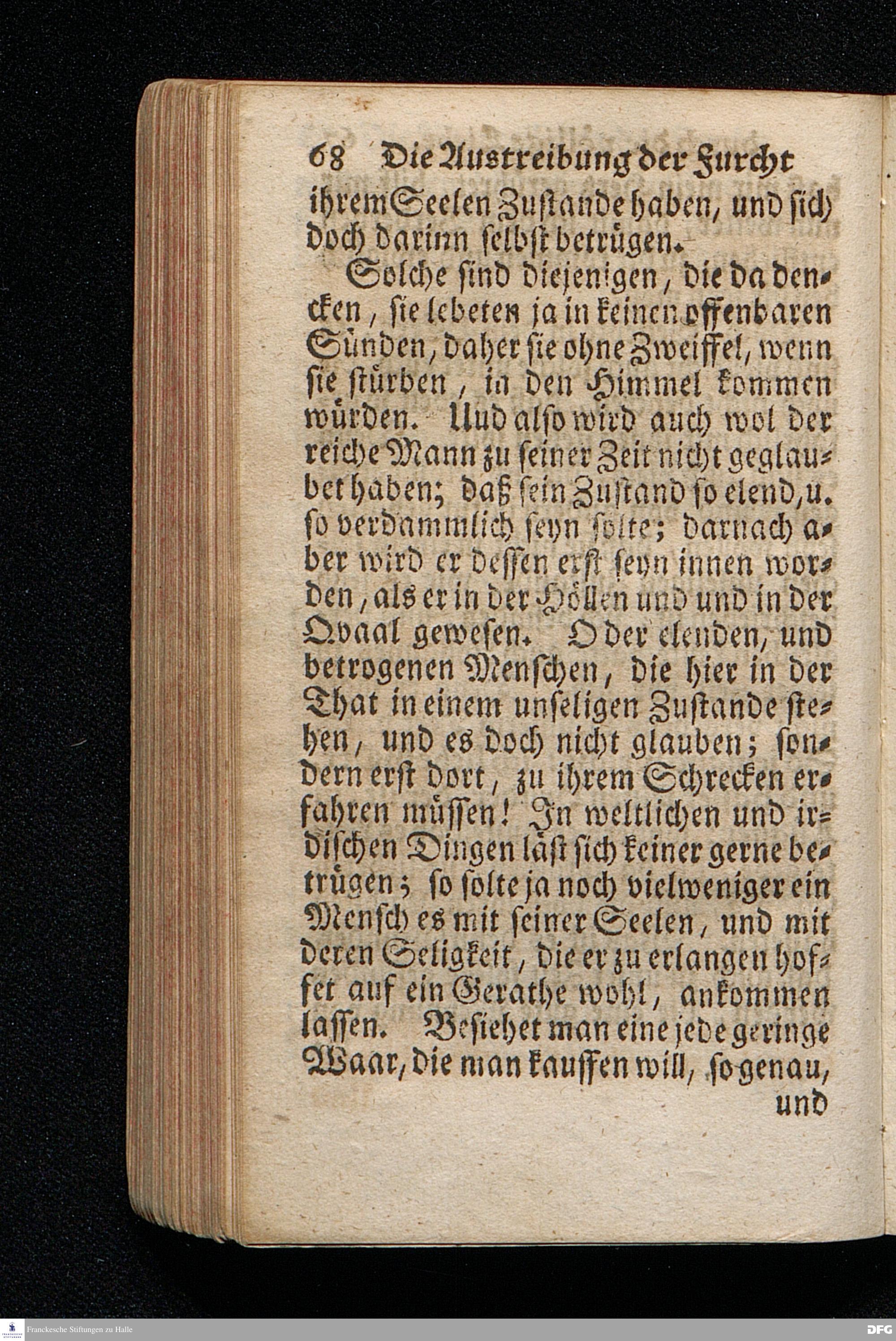 Die Austreibung Der Furcht durch die völlige Liebe, Am I.Sonntag nach Trinitatis 1719. In einer Uber die ordentliche Epistolische Lection aus I.Joh.IV, 16-21. In Der Universitäts=Kirche zu Leipzig auf geschehenen Antrag gehaltenen Predigt vorgestellet, und auf Begehren zum Druck gegeben, Von August Hermann Francken / S.Theol.Prof.& Past.zu St.Ulrich, und des Gymnasii Scholarcha. Andere Auflage. HALLE / In Verlegung des Wäysenhauses / 1723.