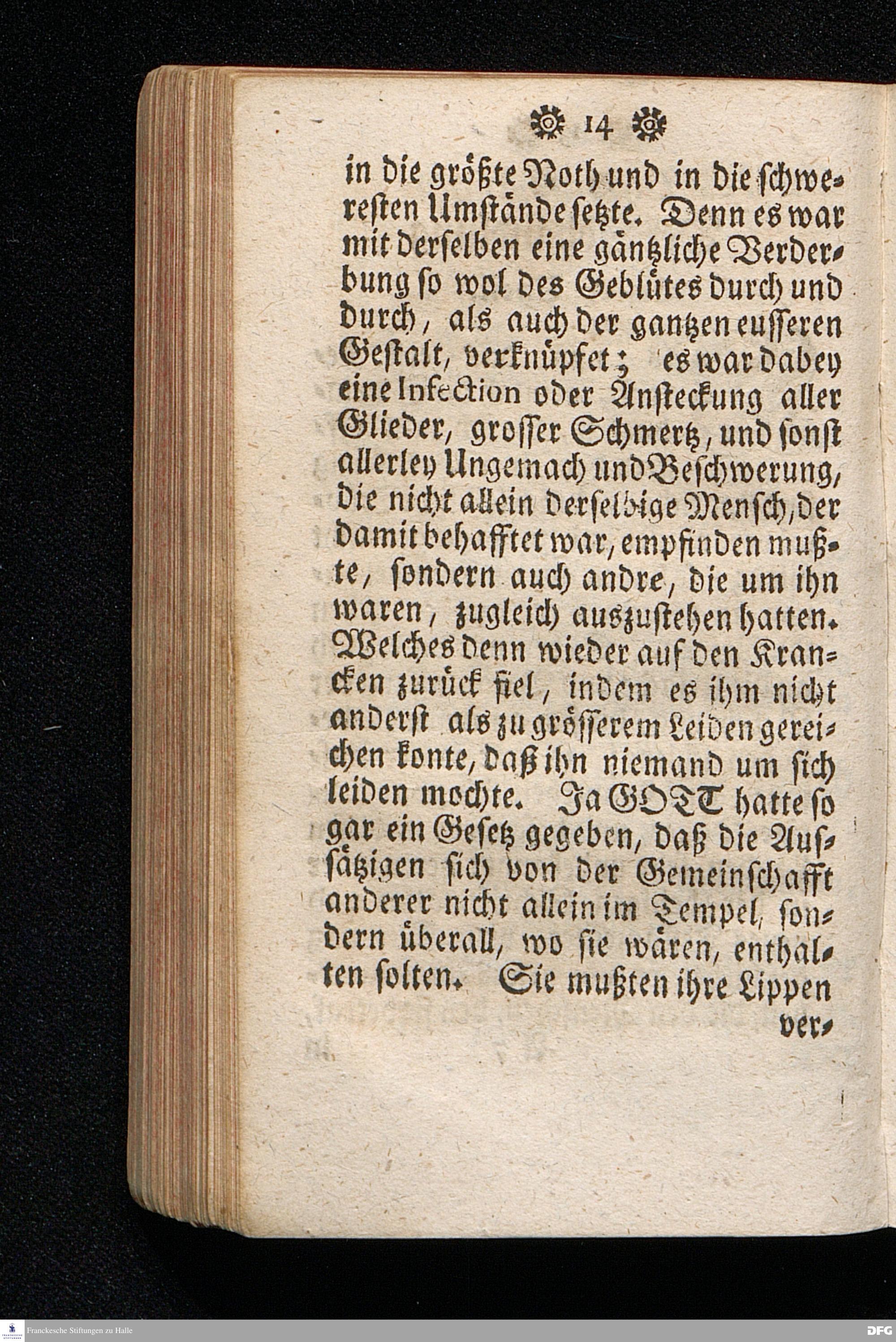 Die Bekehrung Durch Leibliche Trübsal; Wie solche Zwar öffters scheinbar, aber selten rechtschaffen sey / Am XIV.Sonnt.nach Trin. 1719. In einer über das ordentliche Evangelium Luc.XVII, 11-19. In der Guarnison-Kirche der Königl.Preuß.Residentz=Stadt Berl. Auf ergangenen Antrag gehaltenen Predigt vorgetragen, und zum Druck überlassen, Von Aug.Herm.Francken / S.Theol.Prof.& Past.zu St.Ulrich in Halle, und des Gymnasii daselbst Scholarcha. Andere Auflage. BERLIN, in Verlegung des Hallischen Waysenhauses 1723.