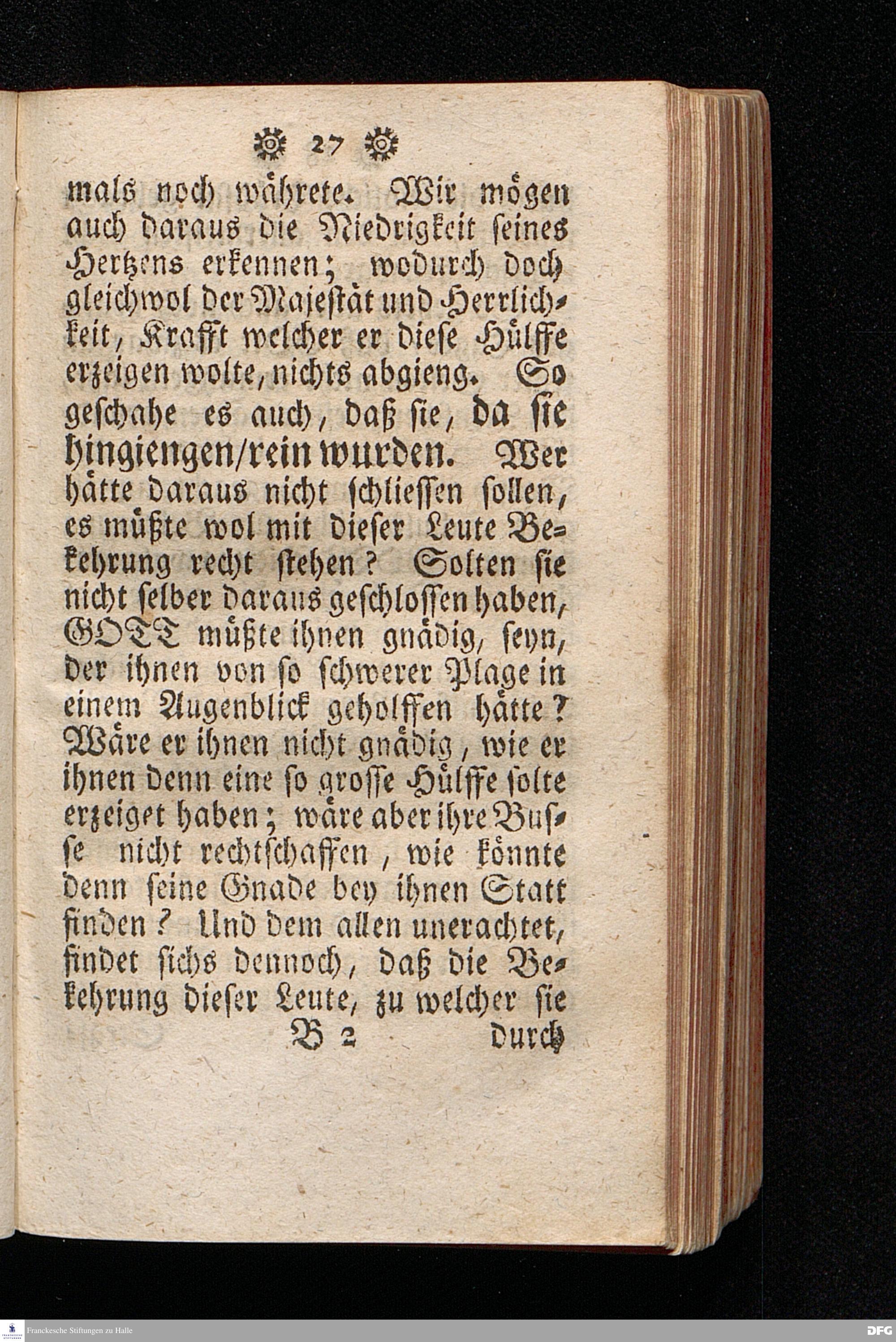 Die Bekehrung Durch Leibliche Trübsal; Wie solche Zwar öffters scheinbar, aber selten rechtschaffen sey / Am XIV.Sonnt.nach Trin. 1719. In einer über das ordentliche Evangelium Luc.XVII, 11-19. In der Guarnison-Kirche der Königl.Preuß.Residentz=Stadt Berl. Auf ergangenen Antrag gehaltenen Predigt vorgetragen, und zum Druck überlassen, Von Aug.Herm.Francken / S.Theol.Prof.& Past.zu St.Ulrich in Halle, und des Gymnasii daselbst Scholarcha. Andere Auflage. BERLIN, in Verlegung des Hallischen Waysenhauses 1723.