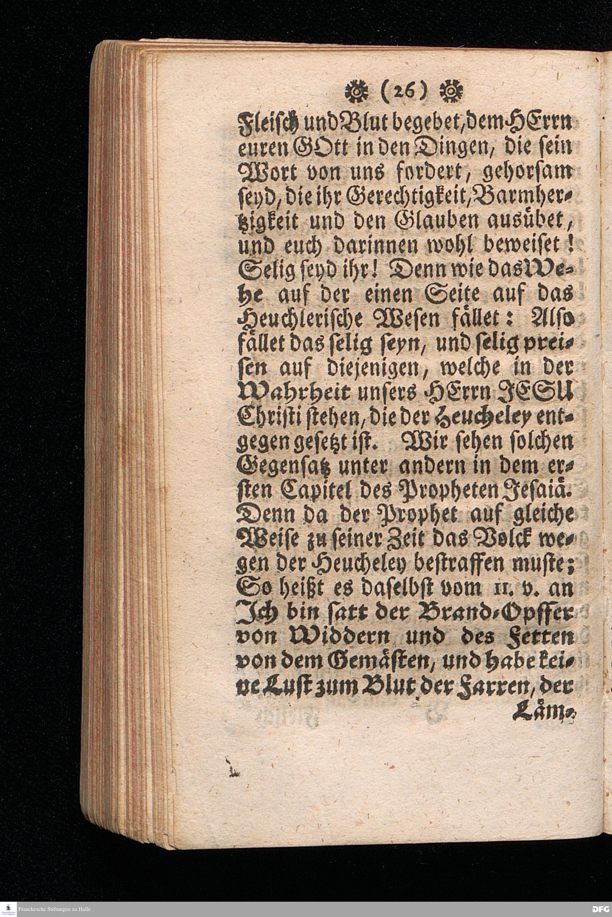 Die Selige Beobachtung des Wichtigsten in der Schrifft, nemlich / des Gerichts / der Barmhertzigkeit und des Glaubens / samt dem Geringsten / aus Matth.XXIII, 23.auf dem Waysen=Hause vorgestellet den 28.Novembr.1711. Von August Hermann Francken / S.Theol.Prof.Ord.und Past.Ulric. Andere Auflage. HALLE, Im Waysen=Hause, 1723.