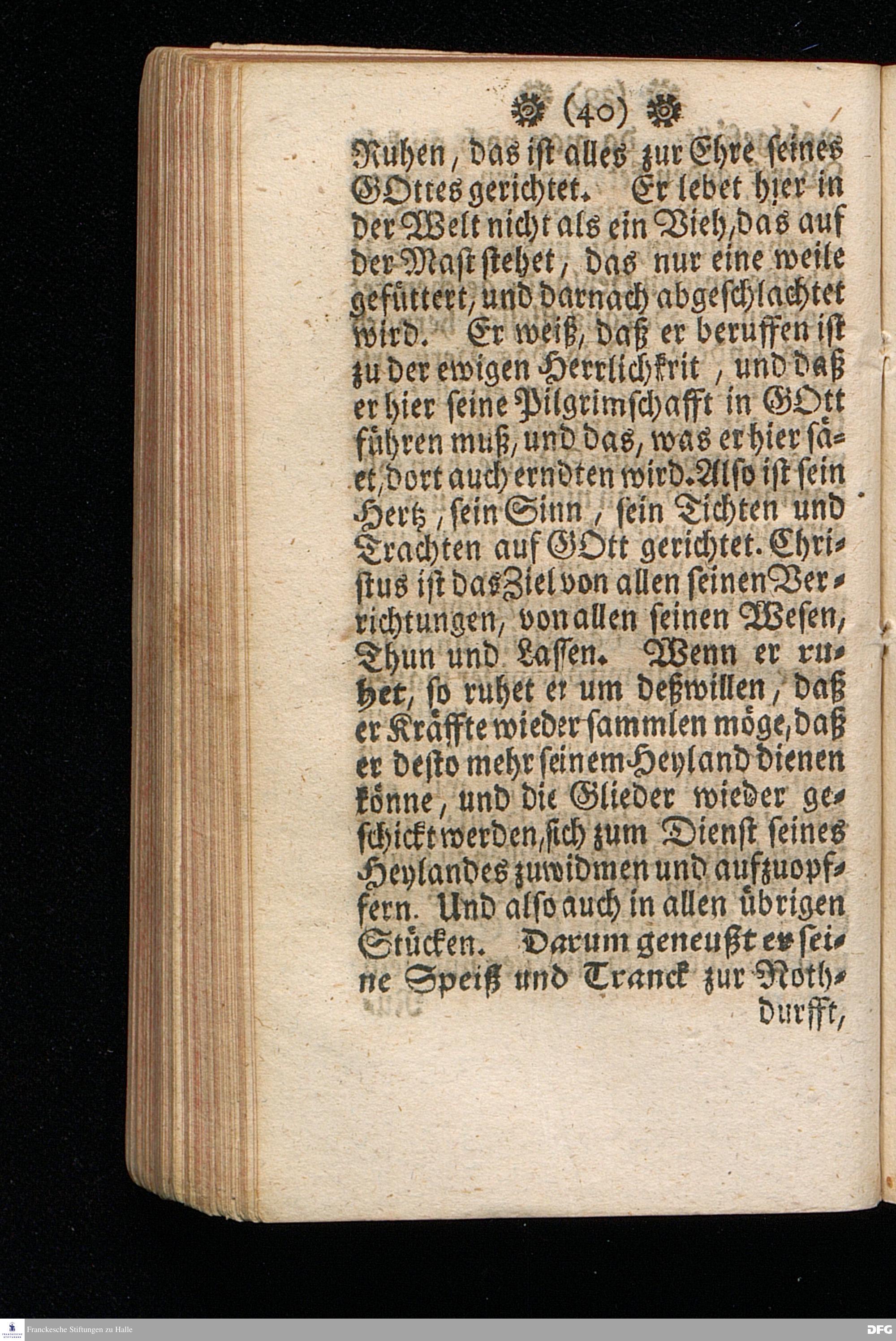 Die Selige Beobachtung des Wichtigsten in der Schrifft, nemlich / des Gerichts / der Barmhertzigkeit und des Glaubens / samt dem Geringsten / aus Matth.XXIII, 23.auf dem Waysen=Hause vorgestellet den 28.Novembr.1711. Von August Hermann Francken / S.Theol.Prof.Ord.und Past.Ulric. Andere Auflage. HALLE, Im Waysen=Hause, 1723.