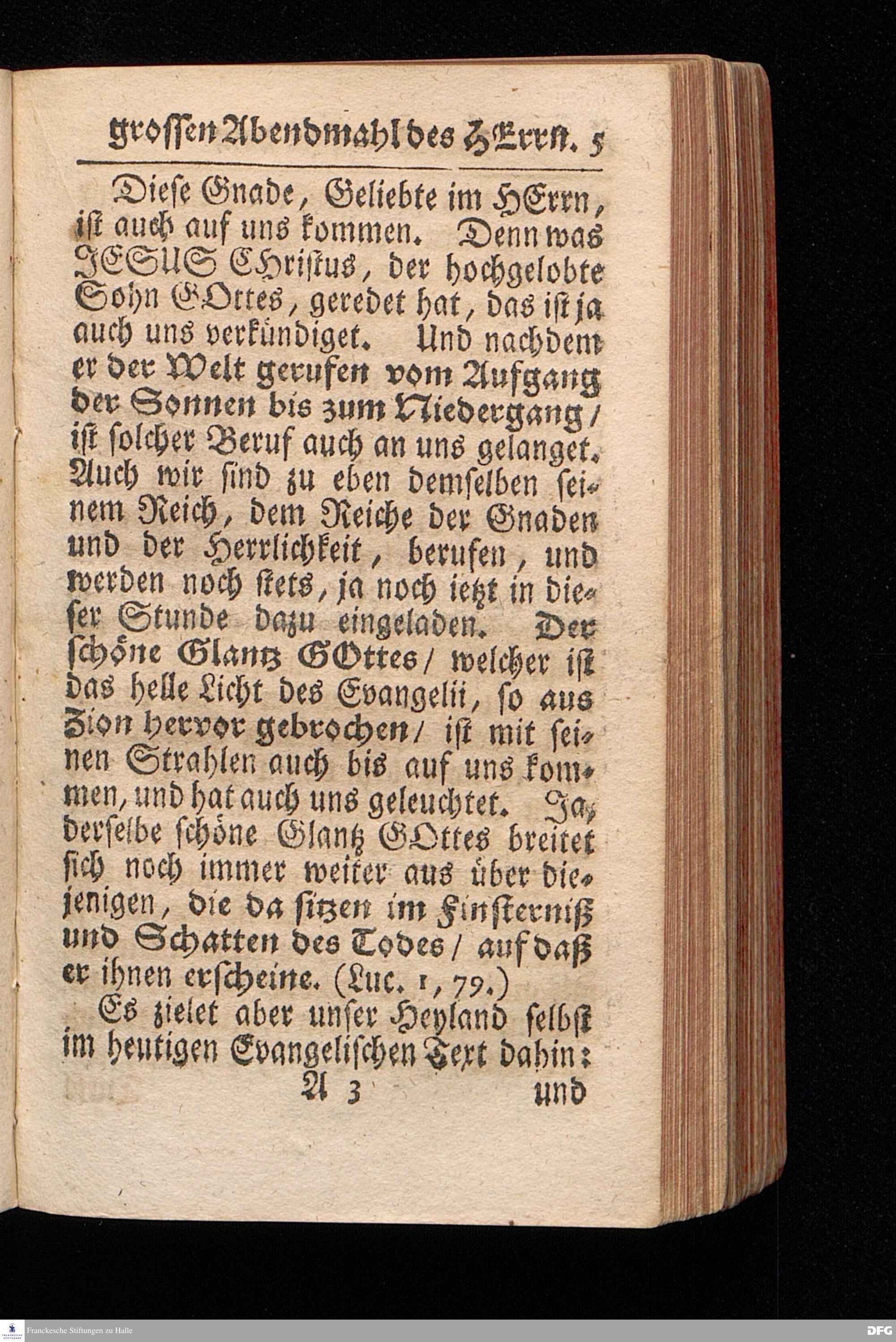Der Beruf Zu dem Grossen Abendmahl des HERRN / Am 2.Sonntage nach Trinitatis 1720. In einer über den ordentlichen Evangel.Text Luc.XIV, 16--24. In der Kirche zu St.Nicolai der Königl.Residenz Stadt Berlin auf Erforderung gehaltenen Predigt vorgestellet / und nach Begehren zum Druck gegeben von August Hermann Francken, S.Theol.Prof.Past.zu St.Ulrich, und des Gymnasii Scholarcha. Andere Auflage. Der Schul=Jugend in den Glauchischen Anstalten nach gehaltenem Examine ausgetheilet den 20ten Julii 1720. HALLE / In Verlegung des Wäysenhauses. MDCCXXIII.