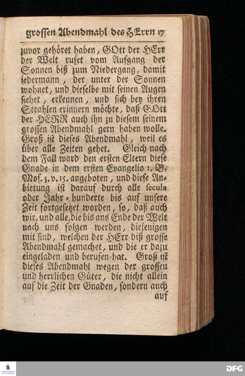 Der Beruf Zu dem Grossen Abendmahl des HERRN / Am 2.Sonntage nach Trinitatis 1720. In einer über den ordentlichen Evangel.Text Luc.XIV, 16--24. In der Kirche zu St.Nicolai der Königl.Residenz Stadt Berlin auf Erforderung gehaltenen Predigt vorgestellet / und nach Begehren zum Druck gegeben von August Hermann Francken, S.Theol.Prof.Past.zu St.Ulrich, und des Gymnasii Scholarcha. Andere Auflage. Der Schul=Jugend in den Glauchischen Anstalten nach gehaltenem Examine ausgetheilet den 20ten Julii 1720. HALLE / In Verlegung des Wäysenhauses. MDCCXXIII.