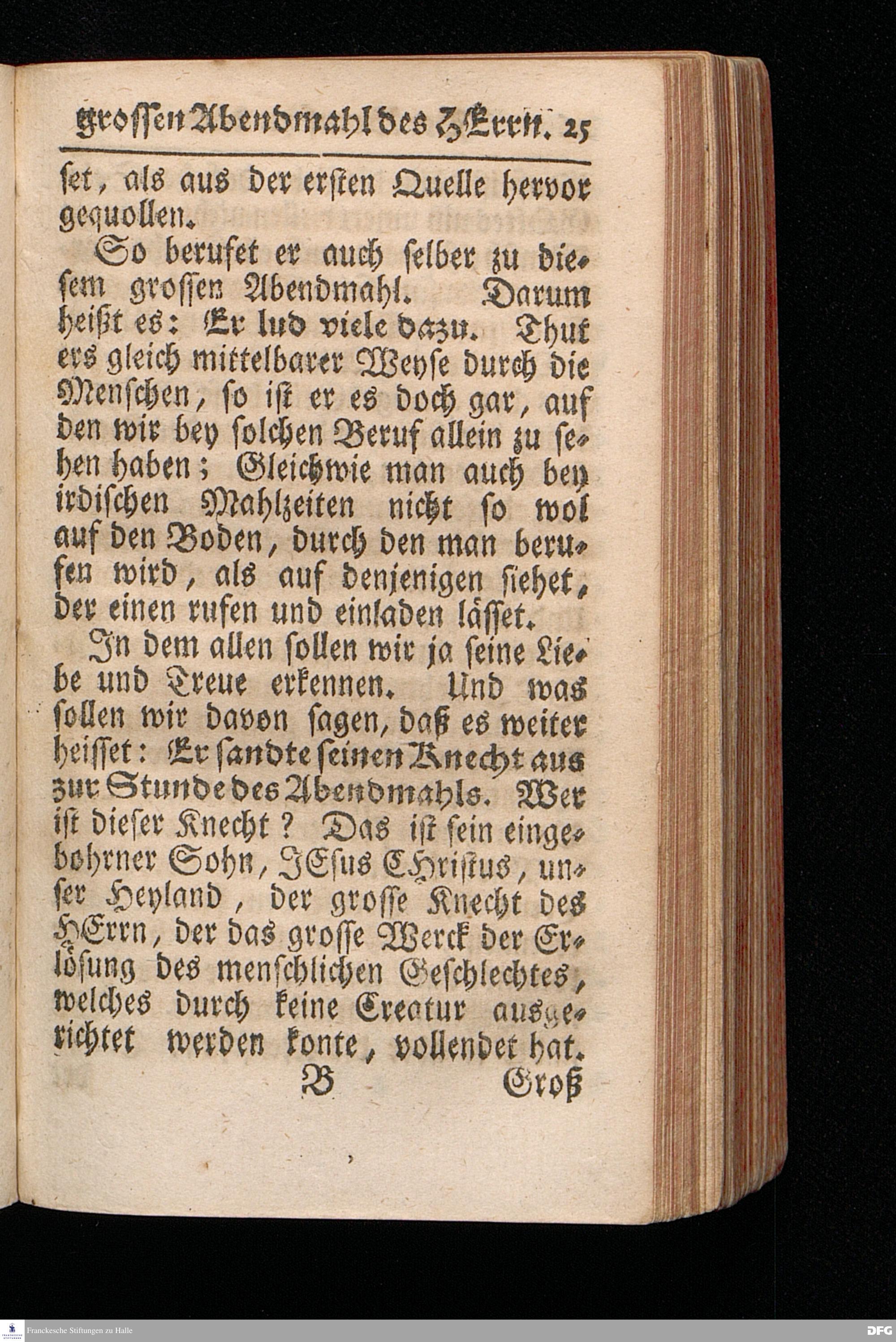 Der Beruf Zu dem Grossen Abendmahl des HERRN / Am 2.Sonntage nach Trinitatis 1720. In einer über den ordentlichen Evangel.Text Luc.XIV, 16--24. In der Kirche zu St.Nicolai der Königl.Residenz Stadt Berlin auf Erforderung gehaltenen Predigt vorgestellet / und nach Begehren zum Druck gegeben von August Hermann Francken, S.Theol.Prof.Past.zu St.Ulrich, und des Gymnasii Scholarcha. Andere Auflage. Der Schul=Jugend in den Glauchischen Anstalten nach gehaltenem Examine ausgetheilet den 20ten Julii 1720. HALLE / In Verlegung des Wäysenhauses. MDCCXXIII.