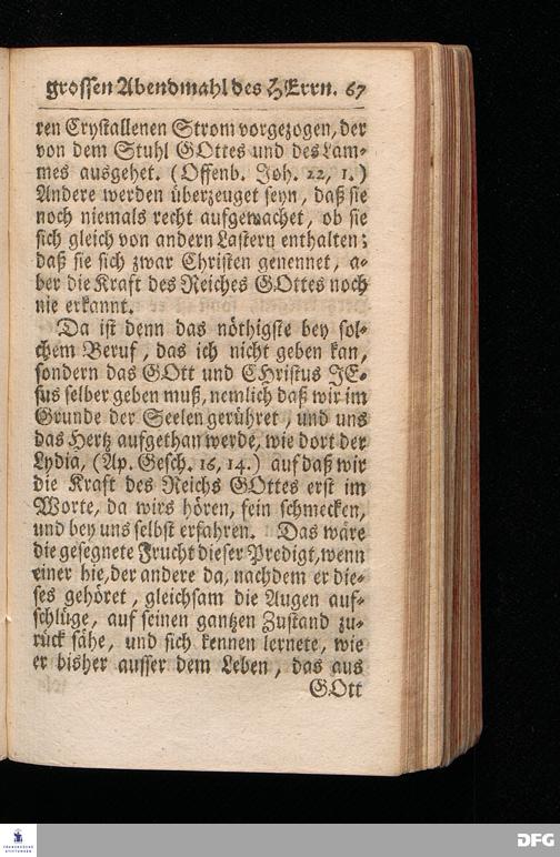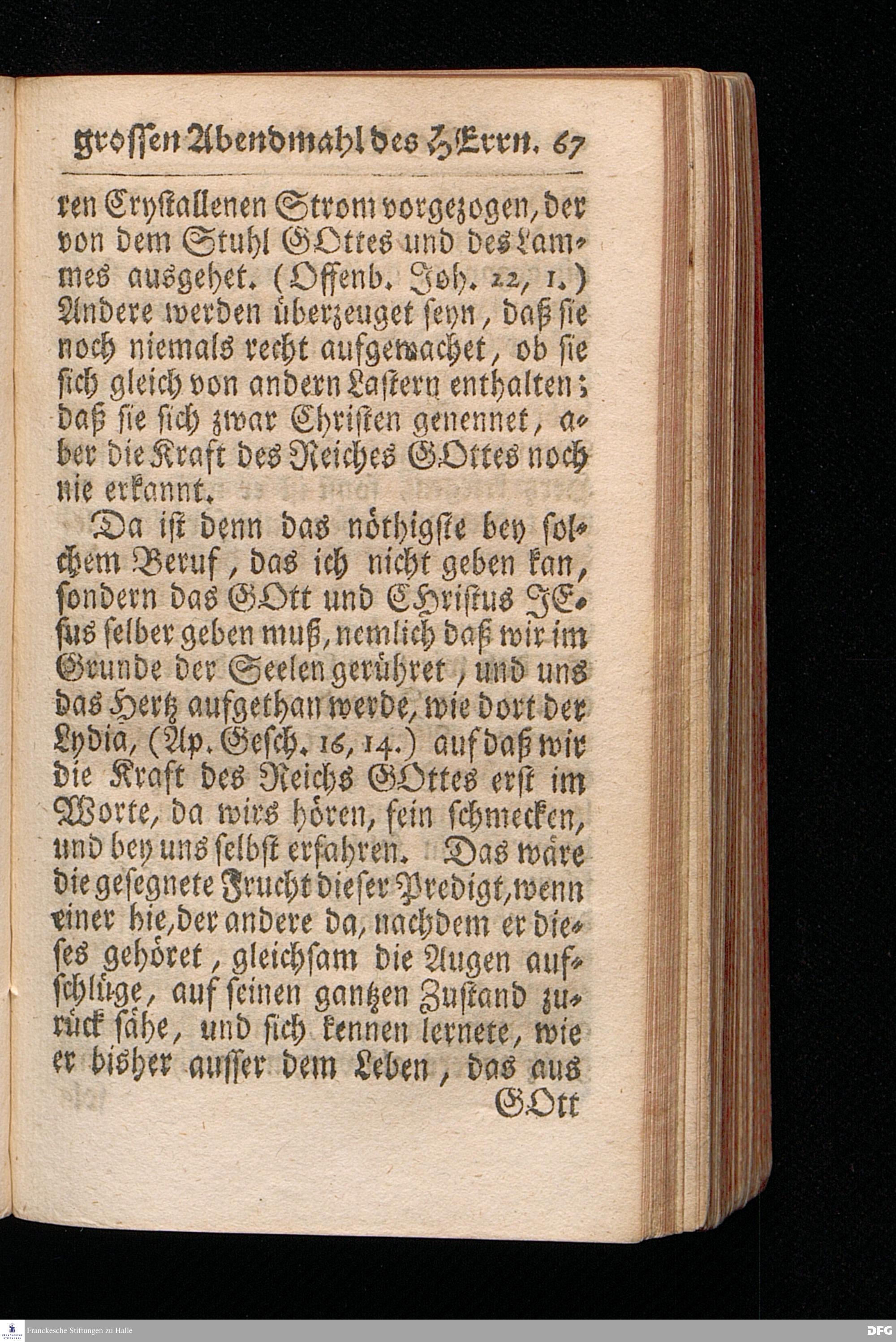 Der Beruf Zu dem Grossen Abendmahl des HERRN / Am 2.Sonntage nach Trinitatis 1720. In einer über den ordentlichen Evangel.Text Luc.XIV, 16--24. In der Kirche zu St.Nicolai der Königl.Residenz Stadt Berlin auf Erforderung gehaltenen Predigt vorgestellet / und nach Begehren zum Druck gegeben von August Hermann Francken, S.Theol.Prof.Past.zu St.Ulrich, und des Gymnasii Scholarcha. Andere Auflage. Der Schul=Jugend in den Glauchischen Anstalten nach gehaltenem Examine ausgetheilet den 20ten Julii 1720. HALLE / In Verlegung des Wäysenhauses. MDCCXXIII.