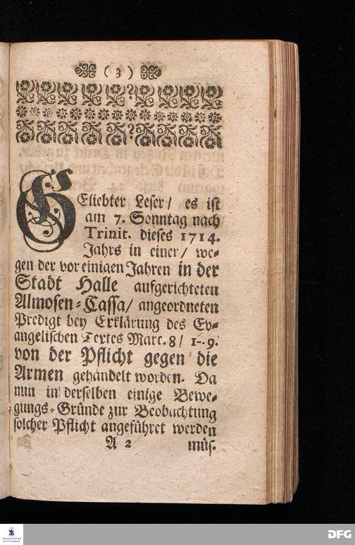 XXIV.Bewegungs=Gründe Zu Beobachtung der Pflicht gegen die Armen / Bey Gelegenheit einer angeordneten Armen=Predigt vorgestellet von August Hermann Francken / S.Theol.Prof.Ord.& Past. Andere Auflage. HALLE, Gedruckt im Wäysen=Hause. 1724.