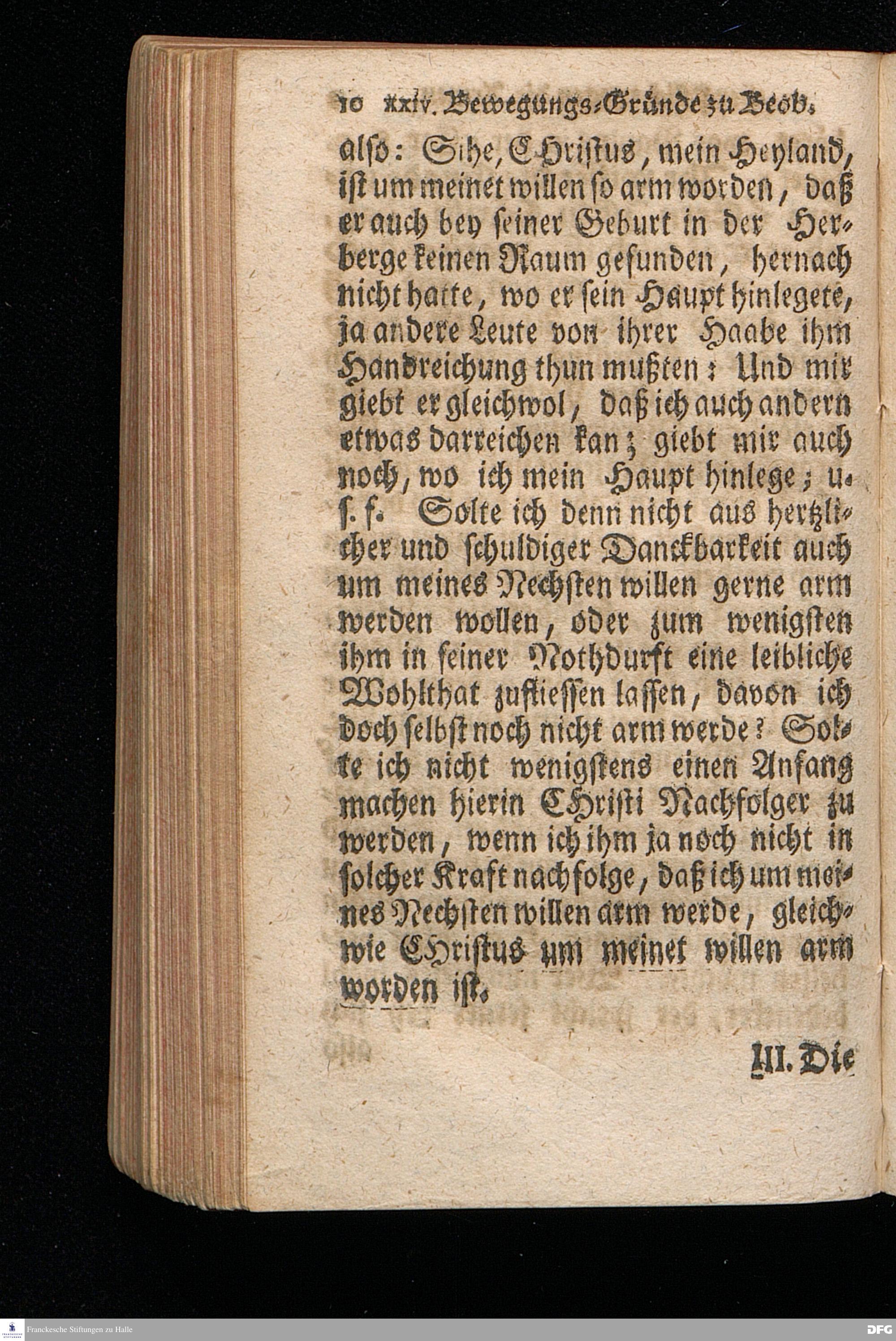 XXIV.Bewegungs=Gründe Zu Beobachtung der Pflicht gegen die Armen / Bey Gelegenheit einer angeordneten Armen=Predigt vorgestellet von August Hermann Francken / S.Theol.Prof.Ord.& Past. Andere Auflage. HALLE, Gedruckt im Wäysen=Hause. 1724.
