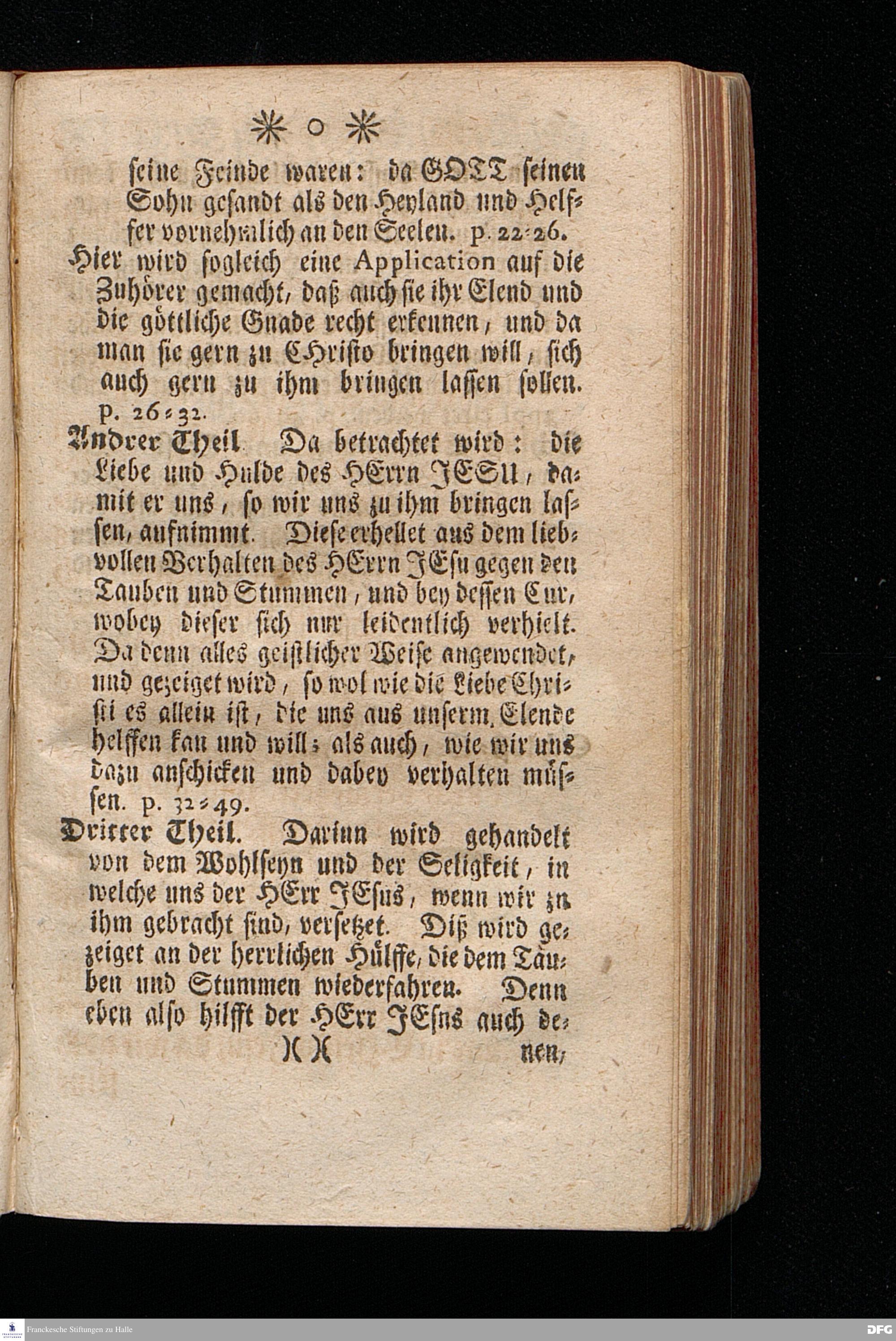 Das Bringen Des Menschen Zu dem HErrn JEsu, Am XII.Sonntage nach Trinit.1719. In einer Uber den ordentlichen Evangelischen Text Marc.VII, 31--37. In der Kirche zu St.Nicolai der Königl. Residenz-Stadt Berlin auf geschehenen Antrag gehaltener Predigt. vorgestellet, und nach Begehren zum Druck gegeben, von August Hermann Francken / S.Theol.Prof.& Past.zu St.Ulrich, und des Gymnasii Scholarcha. Andere Auflage. HALLE, in Verlegung des Wäysen=Hauses 1723.