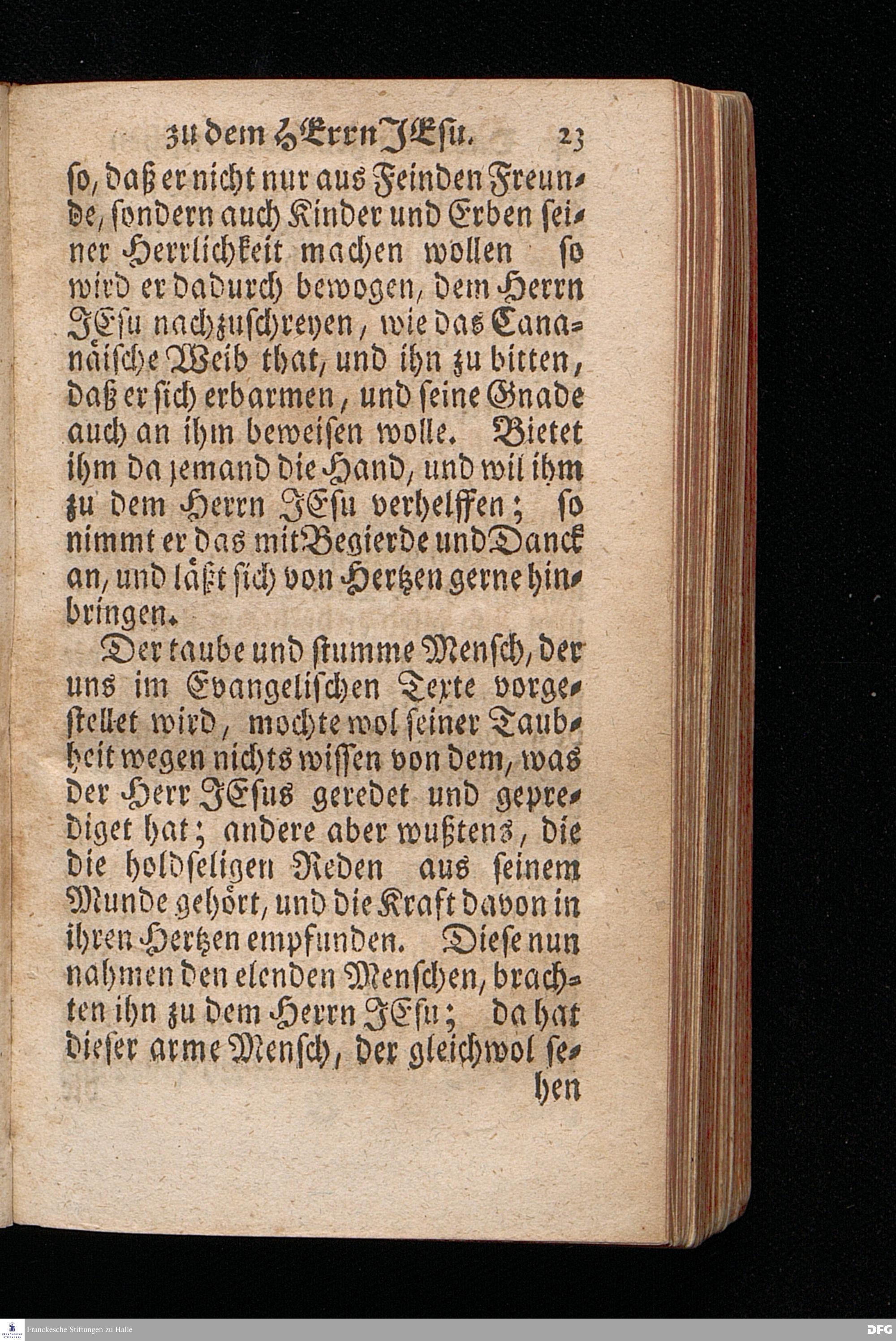 Das Bringen Des Menschen Zu dem HErrn JEsu, Am XII.Sonntage nach Trinit.1719. In einer Uber den ordentlichen Evangelischen Text Marc.VII, 31--37. In der Kirche zu St.Nicolai der Königl. Residenz-Stadt Berlin auf geschehenen Antrag gehaltener Predigt. vorgestellet, und nach Begehren zum Druck gegeben, von August Hermann Francken / S.Theol.Prof.& Past.zu St.Ulrich, und des Gymnasii Scholarcha. Andere Auflage. HALLE, in Verlegung des Wäysen=Hauses 1723.