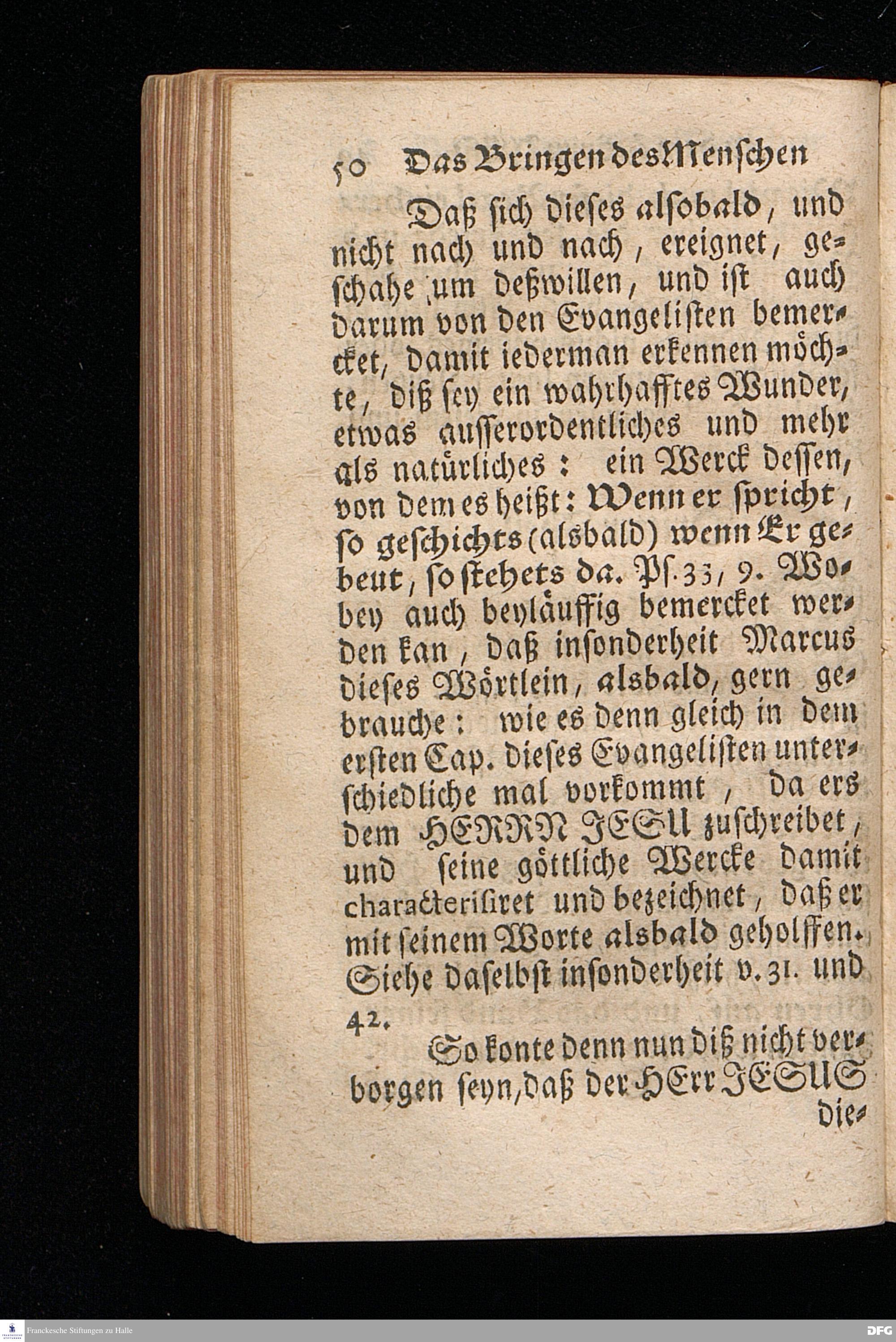 Das Bringen Des Menschen Zu dem HErrn JEsu, Am XII.Sonntage nach Trinit.1719. In einer Uber den ordentlichen Evangelischen Text Marc.VII, 31--37. In der Kirche zu St.Nicolai der Königl. Residenz-Stadt Berlin auf geschehenen Antrag gehaltener Predigt. vorgestellet, und nach Begehren zum Druck gegeben, von August Hermann Francken / S.Theol.Prof.& Past.zu St.Ulrich, und des Gymnasii Scholarcha. Andere Auflage. HALLE, in Verlegung des Wäysen=Hauses 1723.