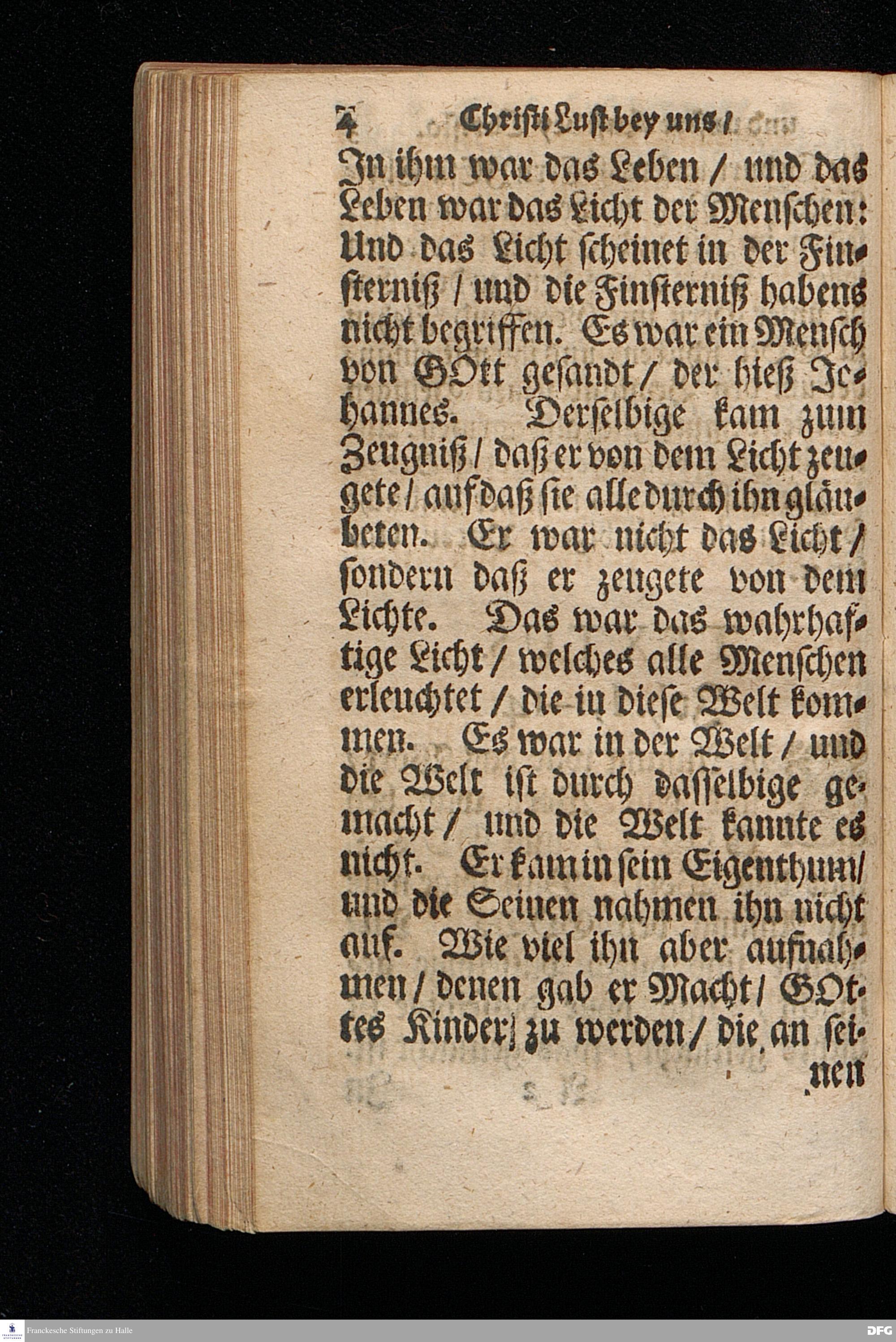 Christi Lust bey uns / und Unsere Lust bey Christo / Am III.Christ=Tage An.1717. In einer Uber den ordentlichen Evangelischen Text Joh.I, 1--14. In der Stadt=Kirchen zu Blaubeuren im Hertzogthum Würtemberg, Auf Erfordern Sr.Hochwürden des ietzigen Herrn Prälaten und gantzen Ministerii daselbst, gehaltenen Und auf Verlangen in den Druck gegebenen Predigt vorgestellet von August Hermann Francken / S.Theol.Prof.Past.und Scholarcha zu Halle im Hertzogthum Magdeburg. HALLE, Gedruckt im Wäysen=Hause. Anno 1718.