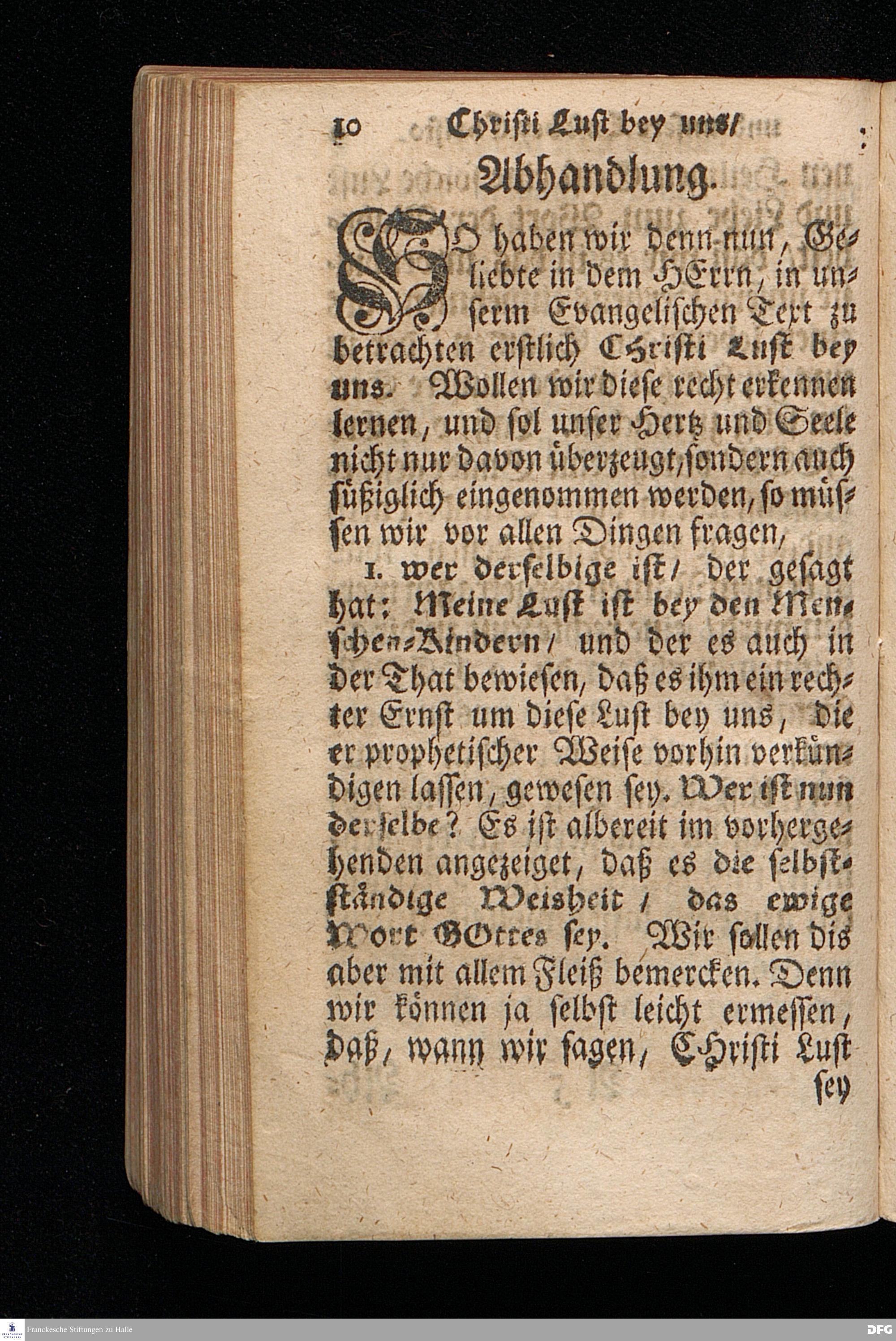 Christi Lust bey uns / und Unsere Lust bey Christo / Am III.Christ=Tage An.1717. In einer Uber den ordentlichen Evangelischen Text Joh.I, 1--14. In der Stadt=Kirchen zu Blaubeuren im Hertzogthum Würtemberg, Auf Erfordern Sr.Hochwürden des ietzigen Herrn Prälaten und gantzen Ministerii daselbst, gehaltenen Und auf Verlangen in den Druck gegebenen Predigt vorgestellet von August Hermann Francken / S.Theol.Prof.Past.und Scholarcha zu Halle im Hertzogthum Magdeburg. HALLE, Gedruckt im Wäysen=Hause. Anno 1718.
