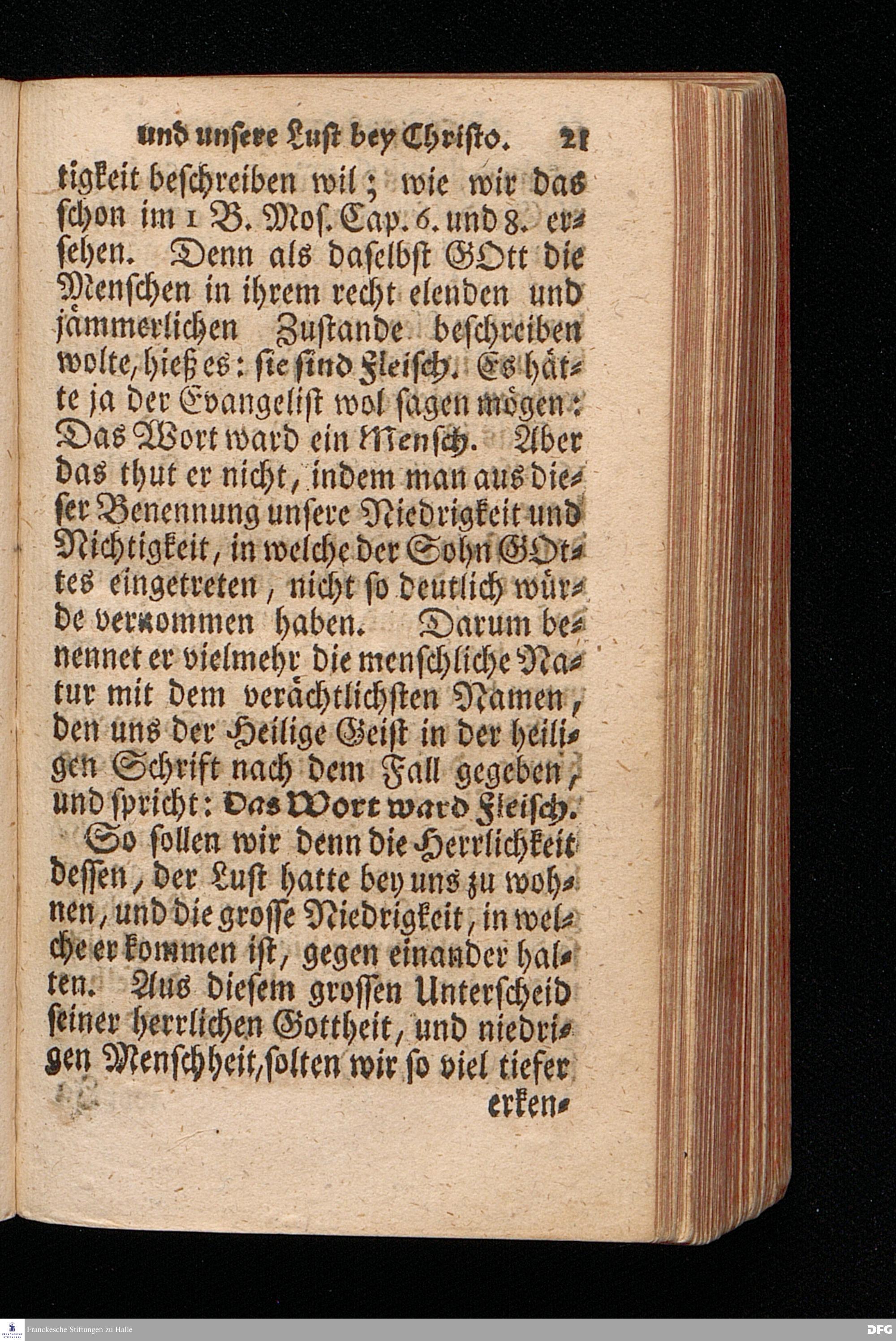 Christi Lust bey uns / und Unsere Lust bey Christo / Am III.Christ=Tage An.1717. In einer Uber den ordentlichen Evangelischen Text Joh.I, 1--14. In der Stadt=Kirchen zu Blaubeuren im Hertzogthum Würtemberg, Auf Erfordern Sr.Hochwürden des ietzigen Herrn Prälaten und gantzen Ministerii daselbst, gehaltenen Und auf Verlangen in den Druck gegebenen Predigt vorgestellet von August Hermann Francken / S.Theol.Prof.Past.und Scholarcha zu Halle im Hertzogthum Magdeburg. HALLE, Gedruckt im Wäysen=Hause. Anno 1718.