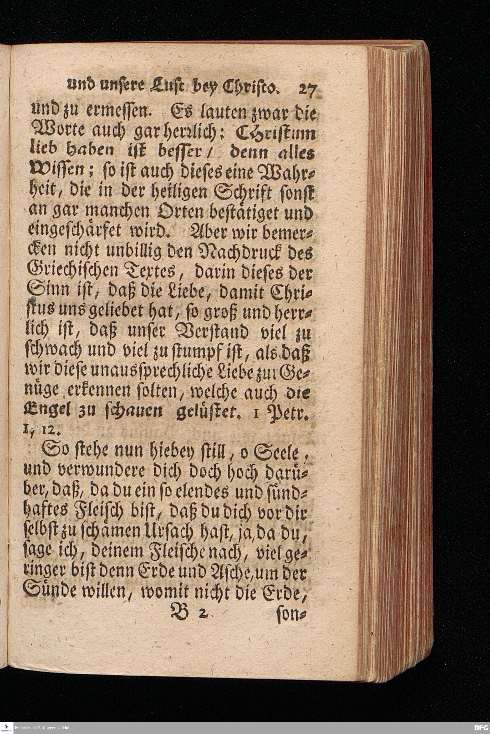 Christi Lust bey uns / und Unsere Lust bey Christo / Am III.Christ=Tage An.1717. In einer Uber den ordentlichen Evangelischen Text Joh.I, 1--14. In der Stadt=Kirchen zu Blaubeuren im Hertzogthum Würtemberg, Auf Erfordern Sr.Hochwürden des ietzigen Herrn Prälaten und gantzen Ministerii daselbst, gehaltenen Und auf Verlangen in den Druck gegebenen Predigt vorgestellet von August Hermann Francken / S.Theol.Prof.Past.und Scholarcha zu Halle im Hertzogthum Magdeburg. HALLE, Gedruckt im Wäysen=Hause. Anno 1718.