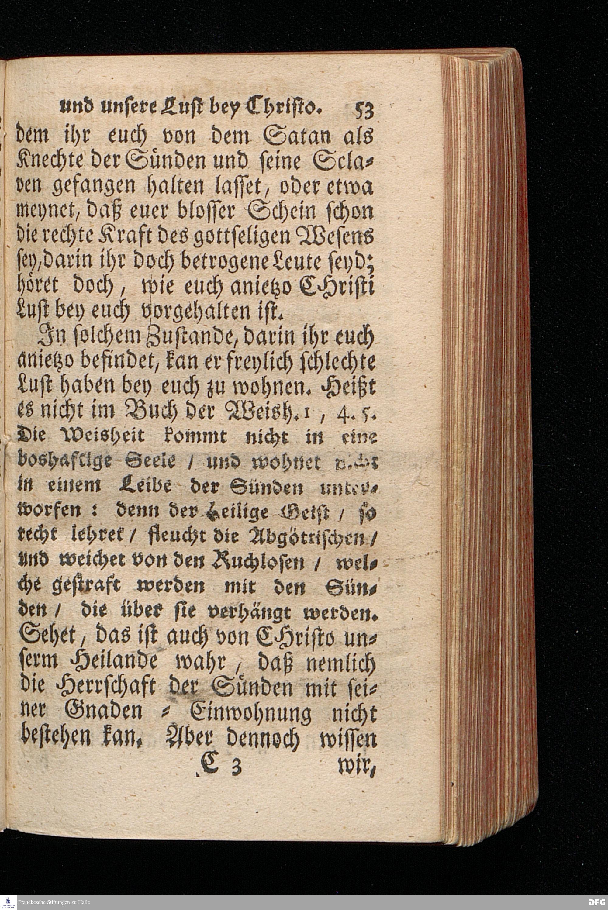 Christi Lust bey uns / und Unsere Lust bey Christo / Am III.Christ=Tage An.1717. In einer Uber den ordentlichen Evangelischen Text Joh.I, 1--14. In der Stadt=Kirchen zu Blaubeuren im Hertzogthum Würtemberg, Auf Erfordern Sr.Hochwürden des ietzigen Herrn Prälaten und gantzen Ministerii daselbst, gehaltenen Und auf Verlangen in den Druck gegebenen Predigt vorgestellet von August Hermann Francken / S.Theol.Prof.Past.und Scholarcha zu Halle im Hertzogthum Magdeburg. HALLE, Gedruckt im Wäysen=Hause. Anno 1718.