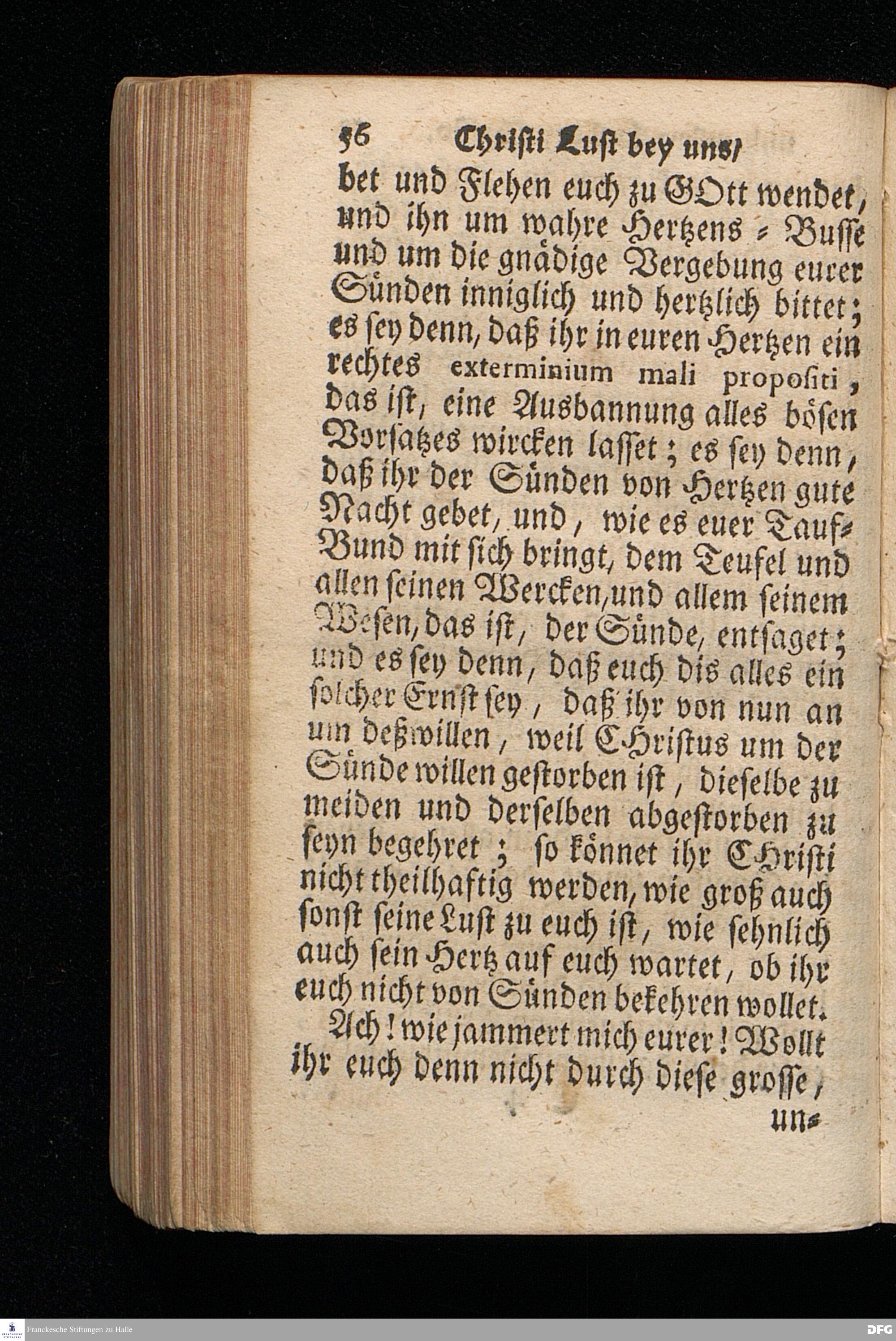 Christi Lust bey uns / und Unsere Lust bey Christo / Am III.Christ=Tage An.1717. In einer Uber den ordentlichen Evangelischen Text Joh.I, 1--14. In der Stadt=Kirchen zu Blaubeuren im Hertzogthum Würtemberg, Auf Erfordern Sr.Hochwürden des ietzigen Herrn Prälaten und gantzen Ministerii daselbst, gehaltenen Und auf Verlangen in den Druck gegebenen Predigt vorgestellet von August Hermann Francken / S.Theol.Prof.Past.und Scholarcha zu Halle im Hertzogthum Magdeburg. HALLE, Gedruckt im Wäysen=Hause. Anno 1718.