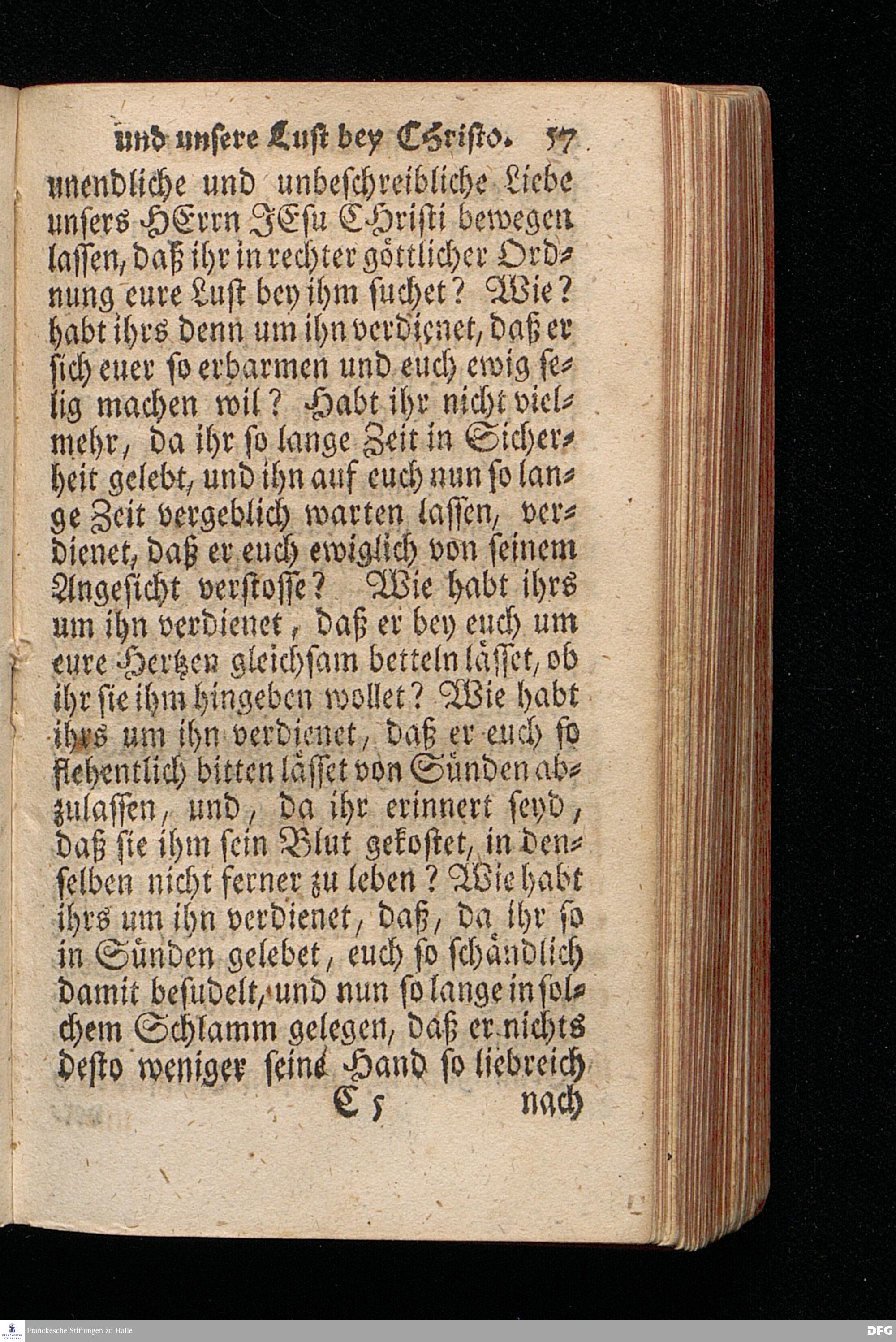 Christi Lust bey uns / und Unsere Lust bey Christo / Am III.Christ=Tage An.1717. In einer Uber den ordentlichen Evangelischen Text Joh.I, 1--14. In der Stadt=Kirchen zu Blaubeuren im Hertzogthum Würtemberg, Auf Erfordern Sr.Hochwürden des ietzigen Herrn Prälaten und gantzen Ministerii daselbst, gehaltenen Und auf Verlangen in den Druck gegebenen Predigt vorgestellet von August Hermann Francken / S.Theol.Prof.Past.und Scholarcha zu Halle im Hertzogthum Magdeburg. HALLE, Gedruckt im Wäysen=Hause. Anno 1718.
