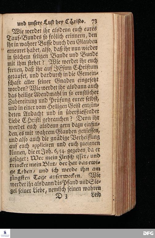 Christi Lust bey uns / und Unsere Lust bey Christo / Am III.Christ=Tage An.1717. In einer Uber den ordentlichen Evangelischen Text Joh.I, 1--14. In der Stadt=Kirchen zu Blaubeuren im Hertzogthum Würtemberg, Auf Erfordern Sr.Hochwürden des ietzigen Herrn Prälaten und gantzen Ministerii daselbst, gehaltenen Und auf Verlangen in den Druck gegebenen Predigt vorgestellet von August Hermann Francken / S.Theol.Prof.Past.und Scholarcha zu Halle im Hertzogthum Magdeburg. HALLE, Gedruckt im Wäysen=Hause. Anno 1718.