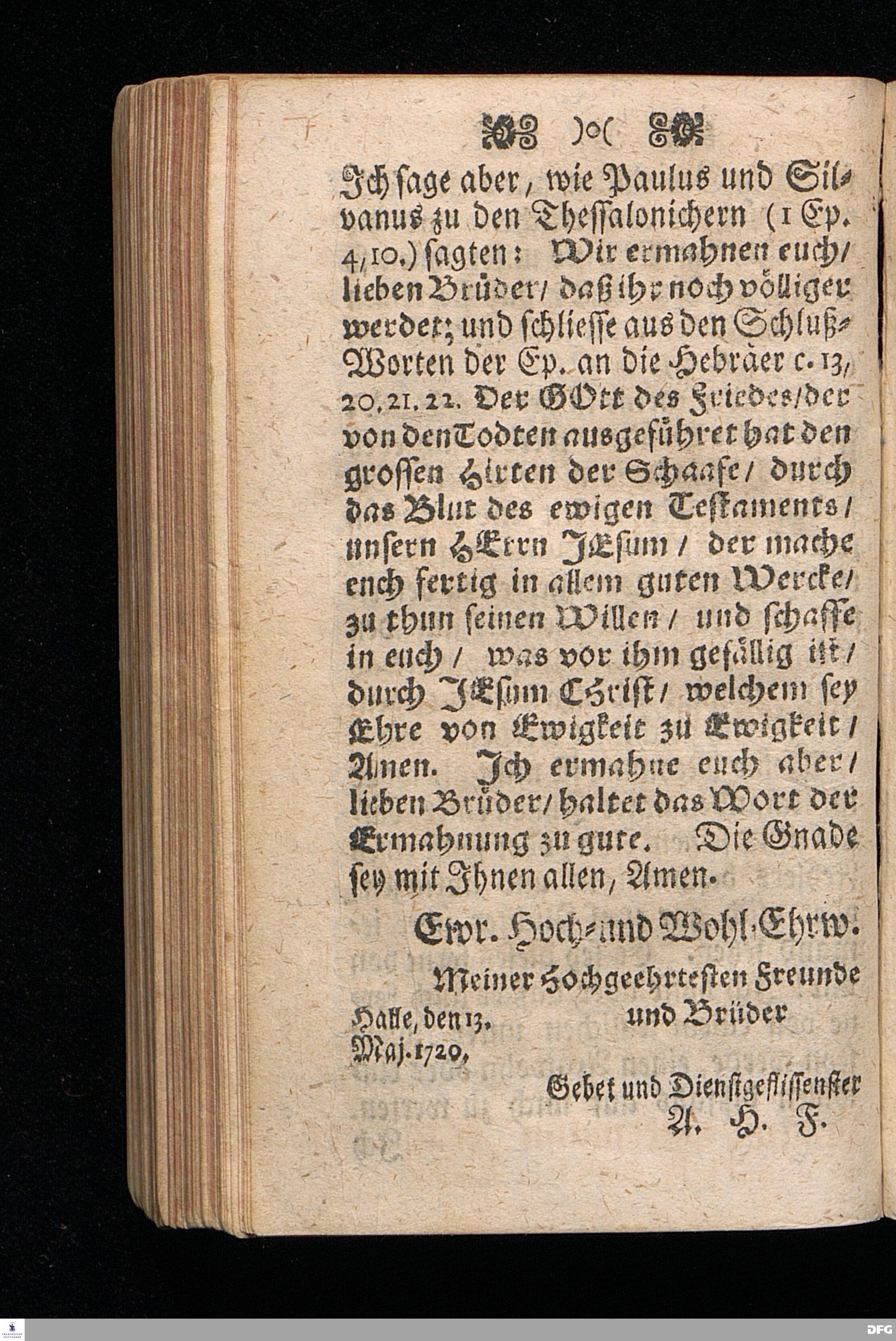 Nassau=Idsteinisches Denck=Maal / In zweyen / zu Wi[e]sbaden am 17.Sonntag nach Trinitatis über Es.VIII,9--15. und zu Idstein am Tage des Apostels Mattäi 1717. über Matth.IX, 9--13. auf Christliches Verlangen gehaltenen / und nun, nebst einer DEDICATION an ein sämtliches Hoch= und Wohl=Ehrwürdiges MINISTERIUM im Fürstenthum Nasssau=Idstein / in den Druck gegebenen Predigten gestiftet von August Hermann Francken / S.Th.Pr.Past.Vlr.& Schol. HALLE, in Verlegung des Wäysen=Hauses MDCCXX.