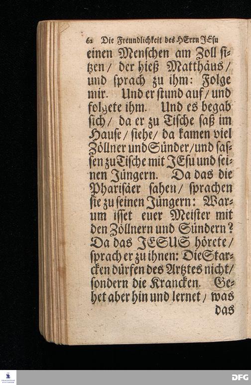Die Freundlichkeit des HErrn JESU in Aufnehmung der Sünder / Am Tag des Apostels Matthäi 1717. Aus dem ordentlichen Evangelio Matth.IX, 9--13. In der Fürstl.Nassauischen Residentz Idstein bey der damaligen Durchreise in einer auf Verlangen gehaltenen Predigt vorgestellet von August Hermann Francken. [1720]